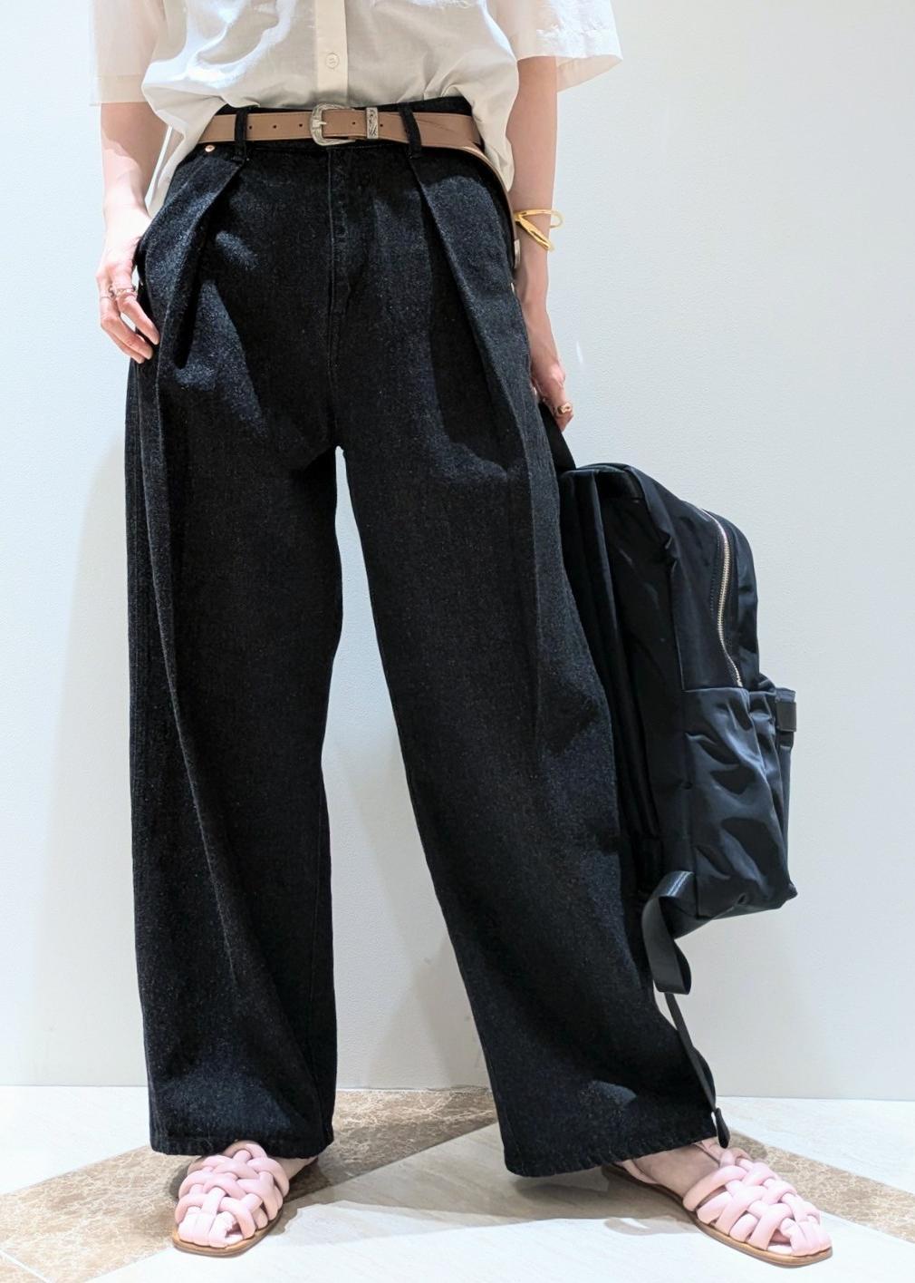 ROPÉ【洗える】ワンタック ワイドデニムパンツブラック / 38¥27,500レビュー身長167cm、38サイズ着用。
