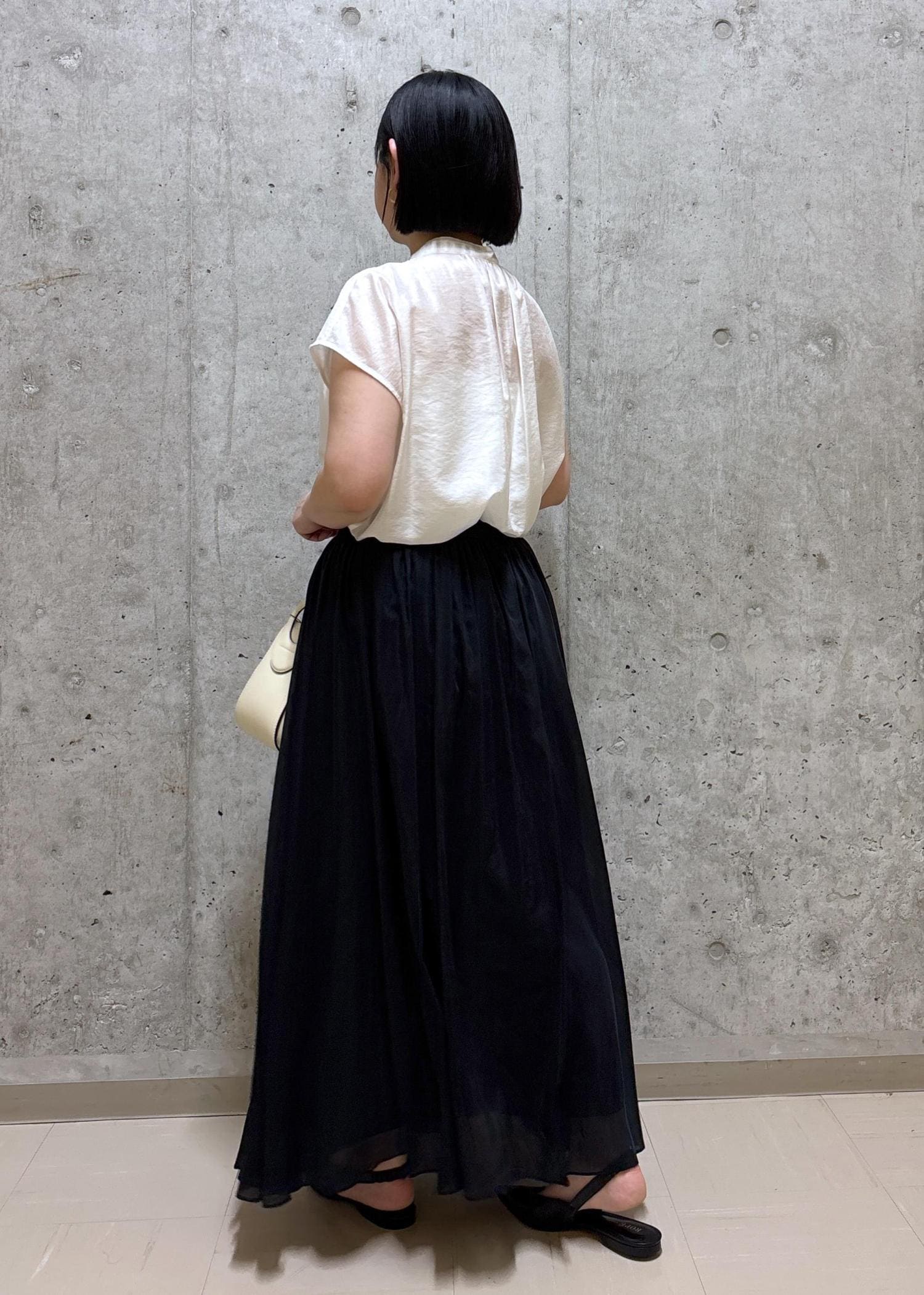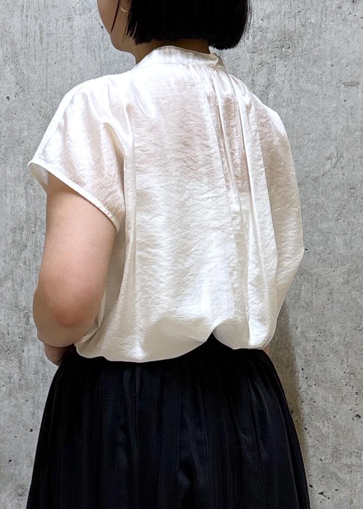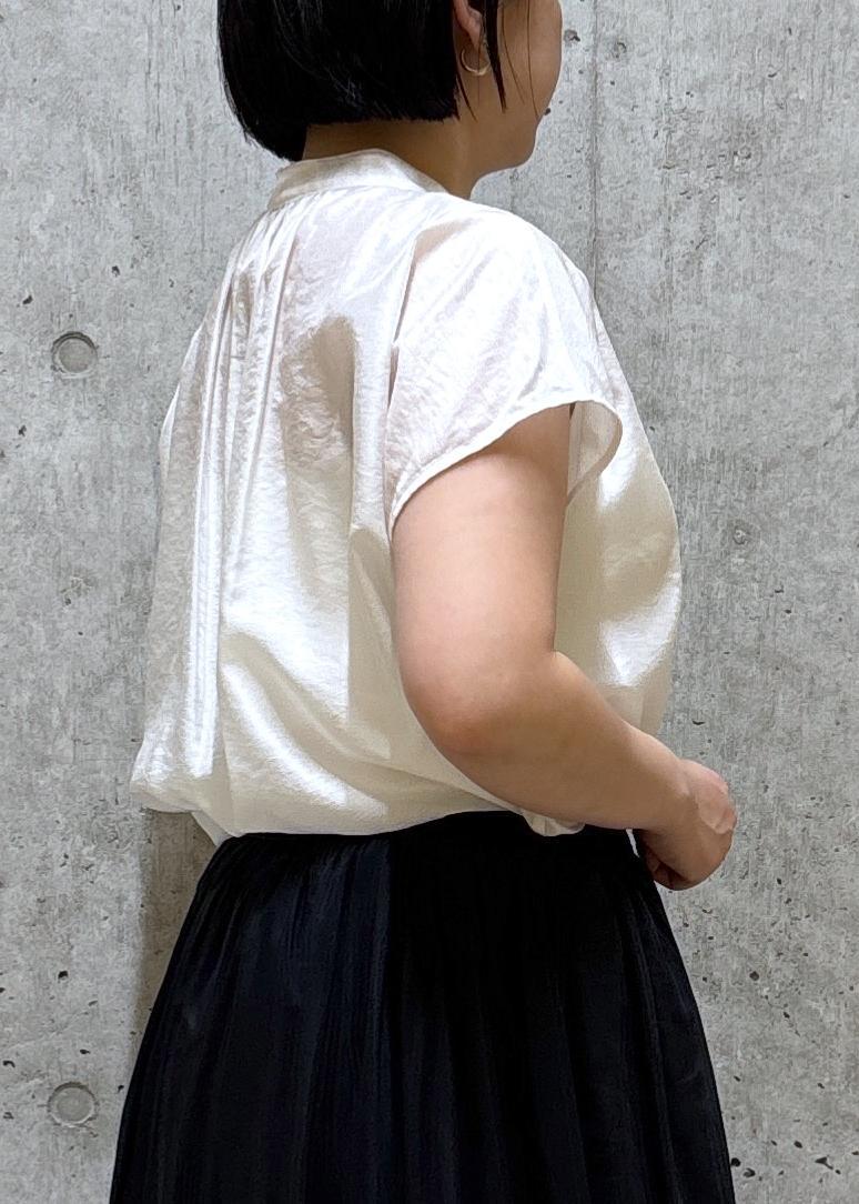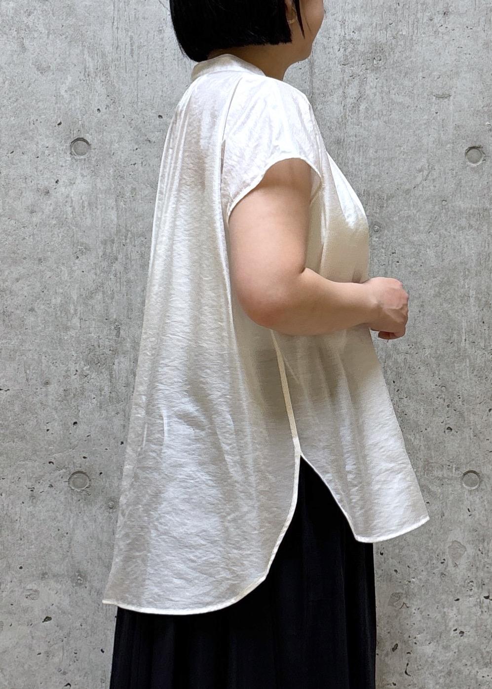 アウトレットROPÉ【洗える】キュプラシルク フレンチスリーブブラウスホワイト / F¥9,900レビュー152cmでFサイズ着用