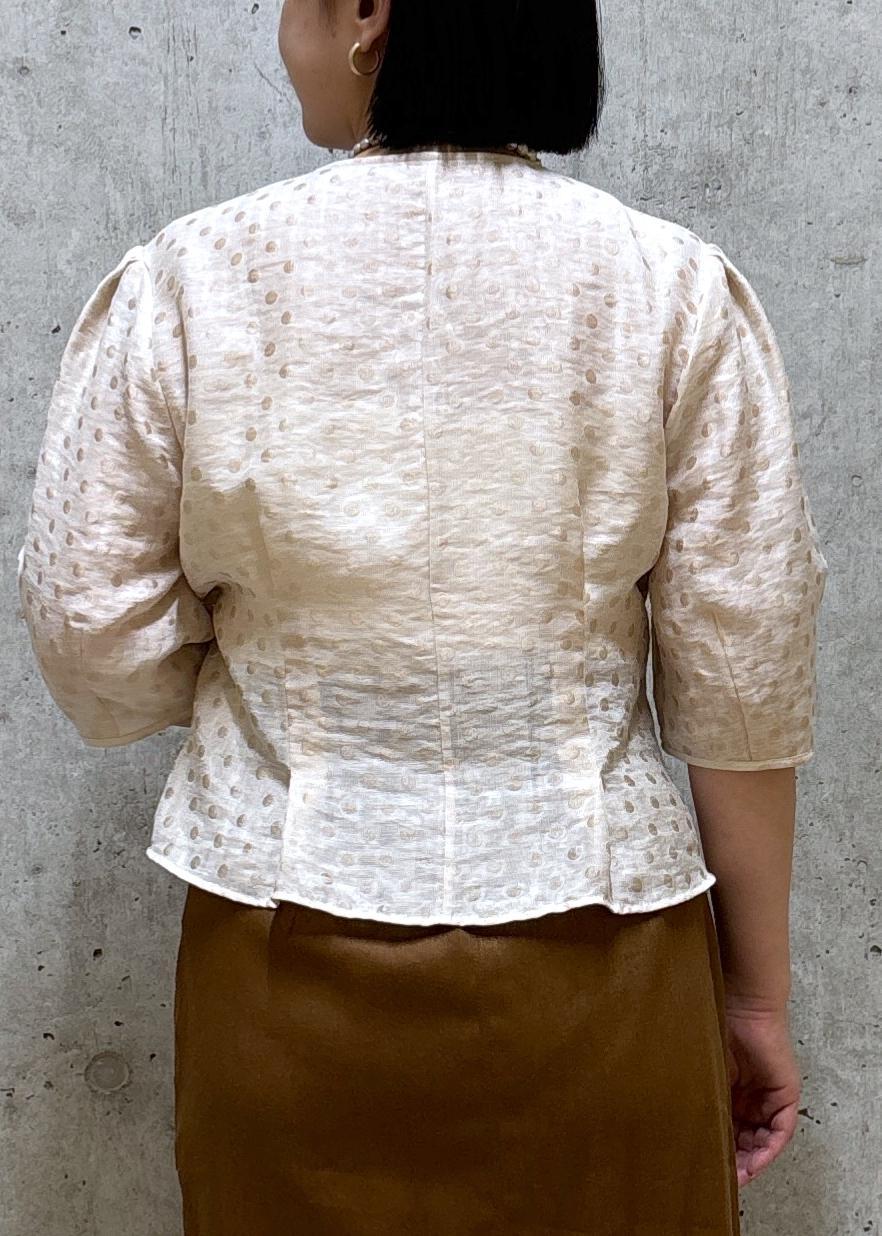 ROPÉ【洗える・羽織にもなる】Vネック5分袖パフスリーブブラウスホワイト系 / F¥18,700レビュー152cmでFサイズ着用