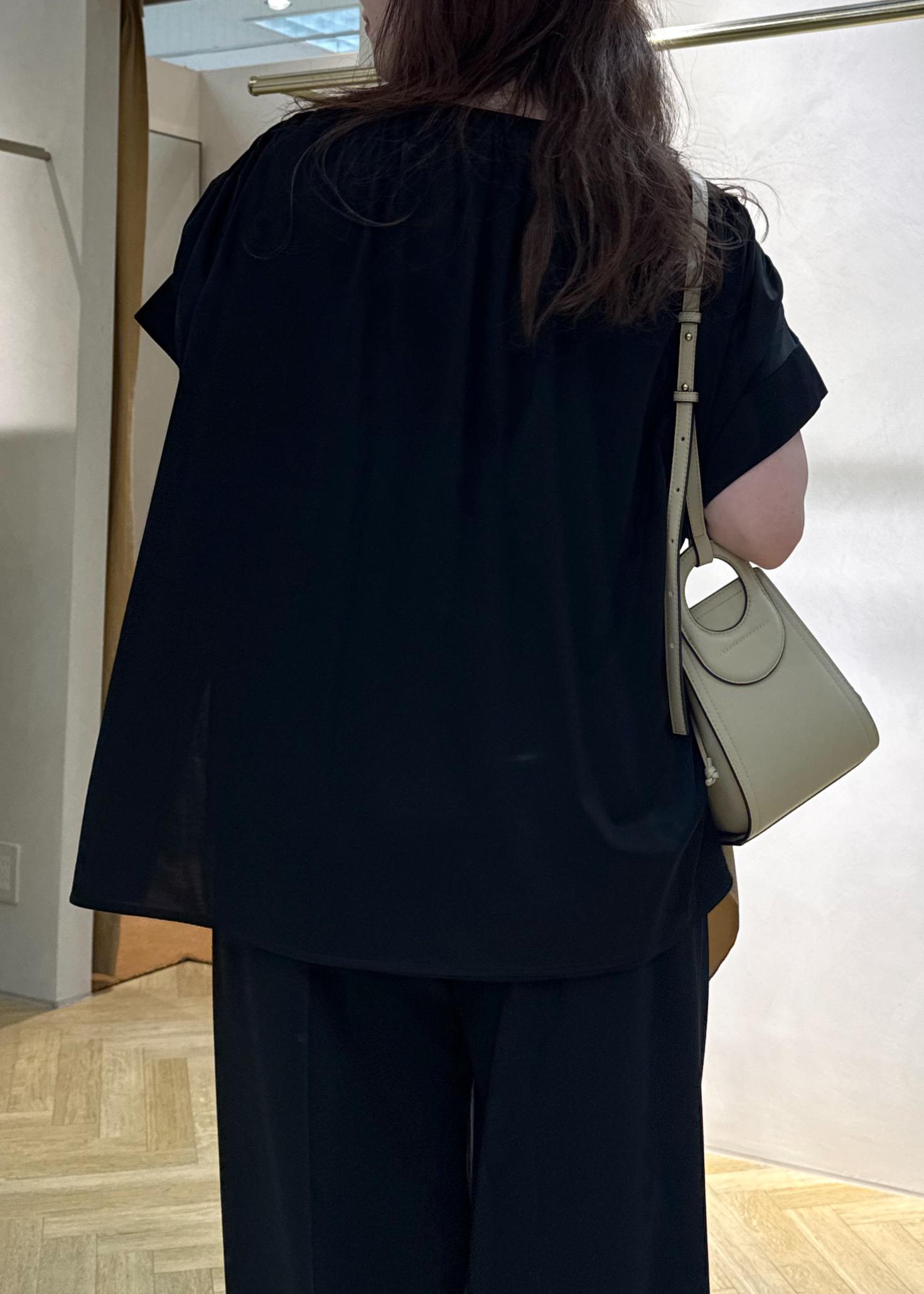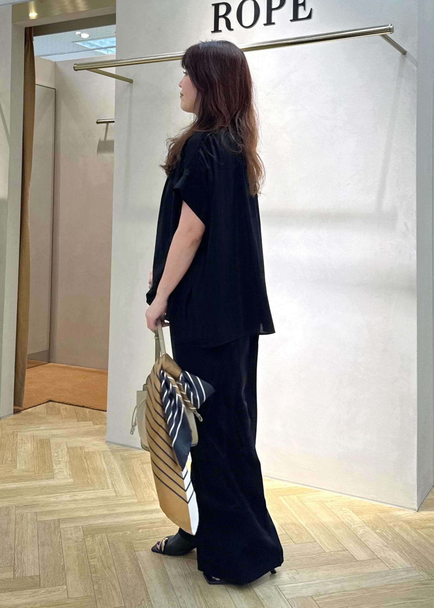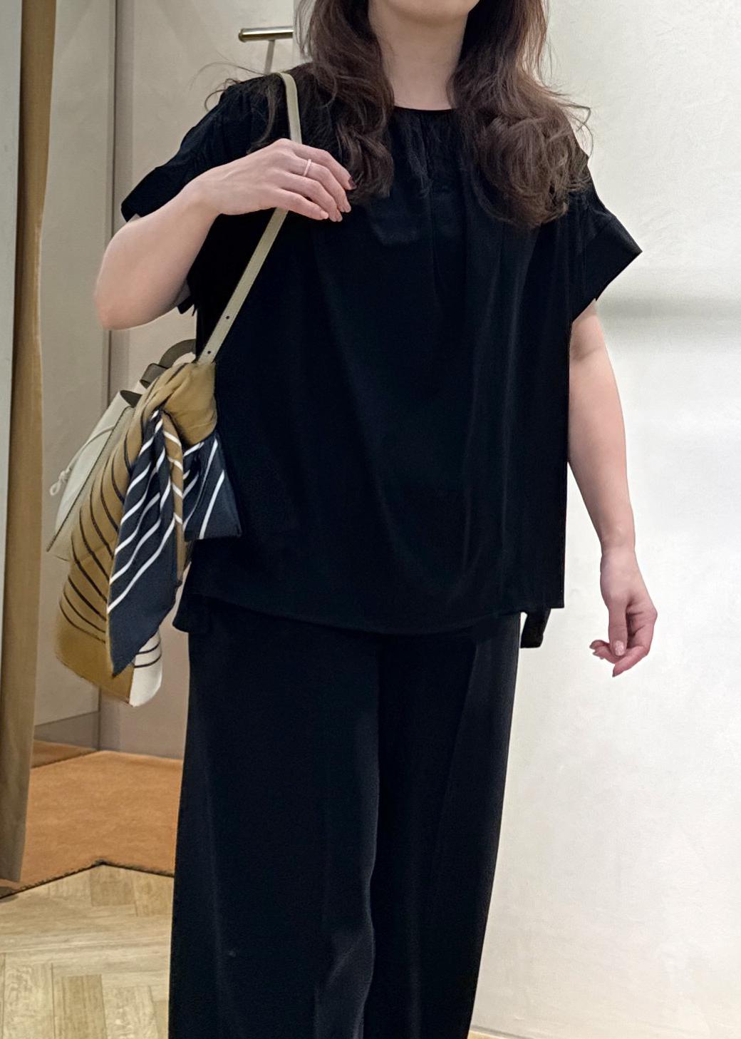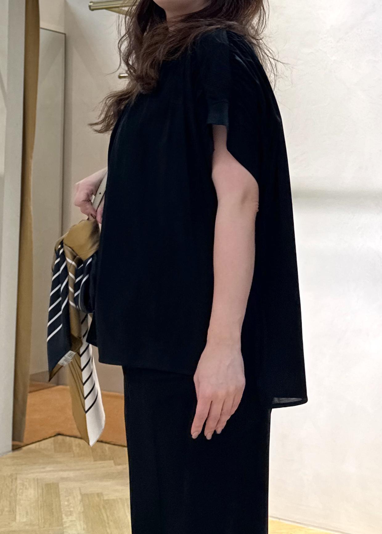 アウトレットROPÉ【洗える】クリア天竺ギャザー半袖プルオーバー/お仕事服ブラック / F¥13,200レビューとてもゆったりとしたシルエットで体のラインを気にせず着れますがボリュームがある印象になりやすいボックス型のシルエットなのですっきり見せるにはボトムとのバランスが大事かなと思います。