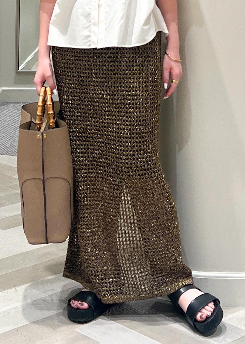 アウトレットROPÉラメメッシュスカート/セットアップ対応ゴールド / 38¥13,200レビュー38サイズ着用で着丈は足首に隠れます。