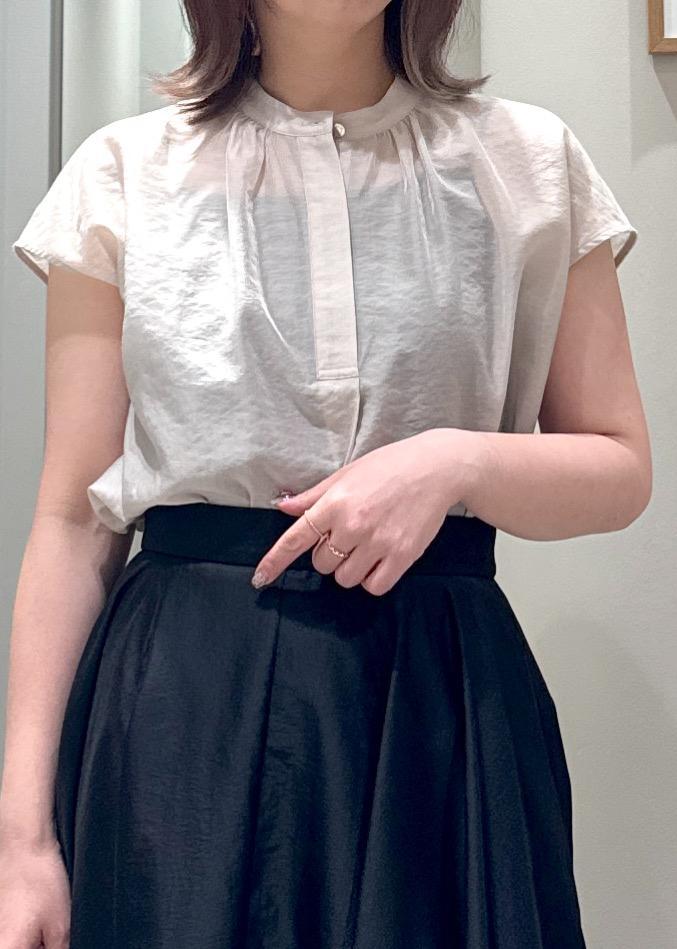 アウトレットROPÉ【洗える】キュプラシルク フレンチスリーブブラウスベージュ / F¥9,900レビューシャリ感があり肌ばなれの良い生地感。