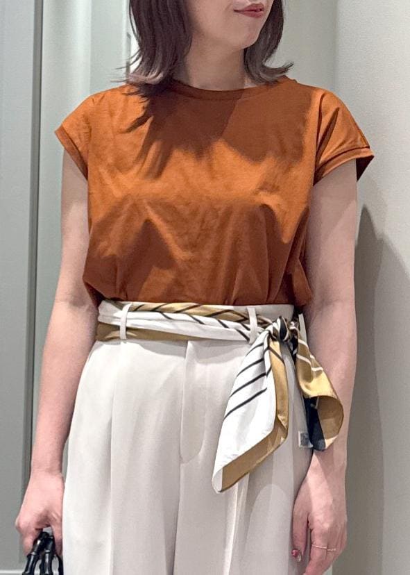 アウトレットROPÉ【接触冷感・洗える・洗濯耐久あり】ノースリーブTEEブラウン / F¥8,470レビュー程よい光沢感のあるコットン素材なので