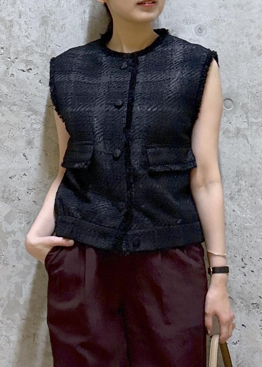 サマーツイードのジレブルゾンは、