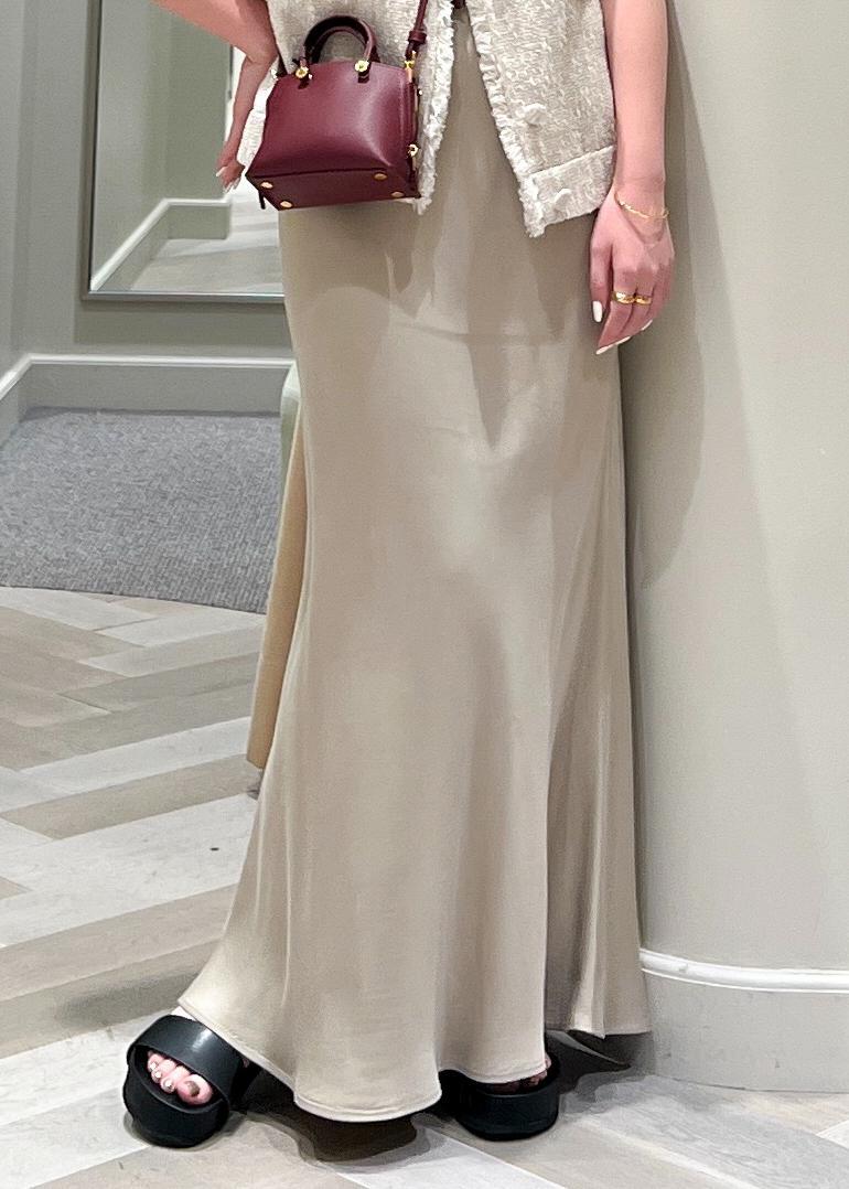 アウトレットROPÉ【WEB・一部店舗限定】フィブリルサテンマーメイドスカート【セットアップ対応】/洗えるベージュ系 / 38¥11,880レビュー38サイズ着用でくるぶし隠れるロング丈です。