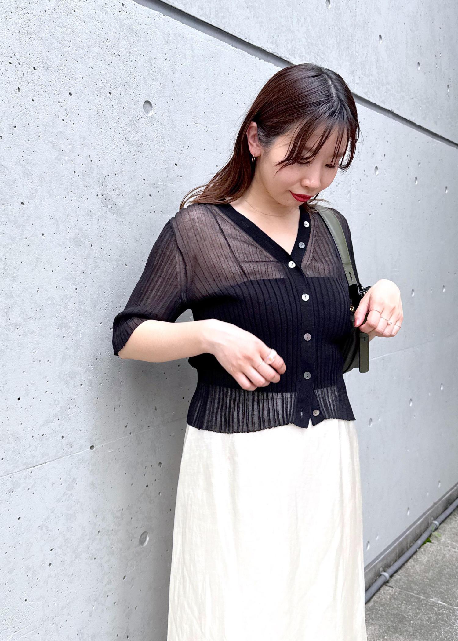 アウトレットROPÉシアーリブカーディガン/洗えるブラック / F¥13,090レビュージャストサイズでした。
