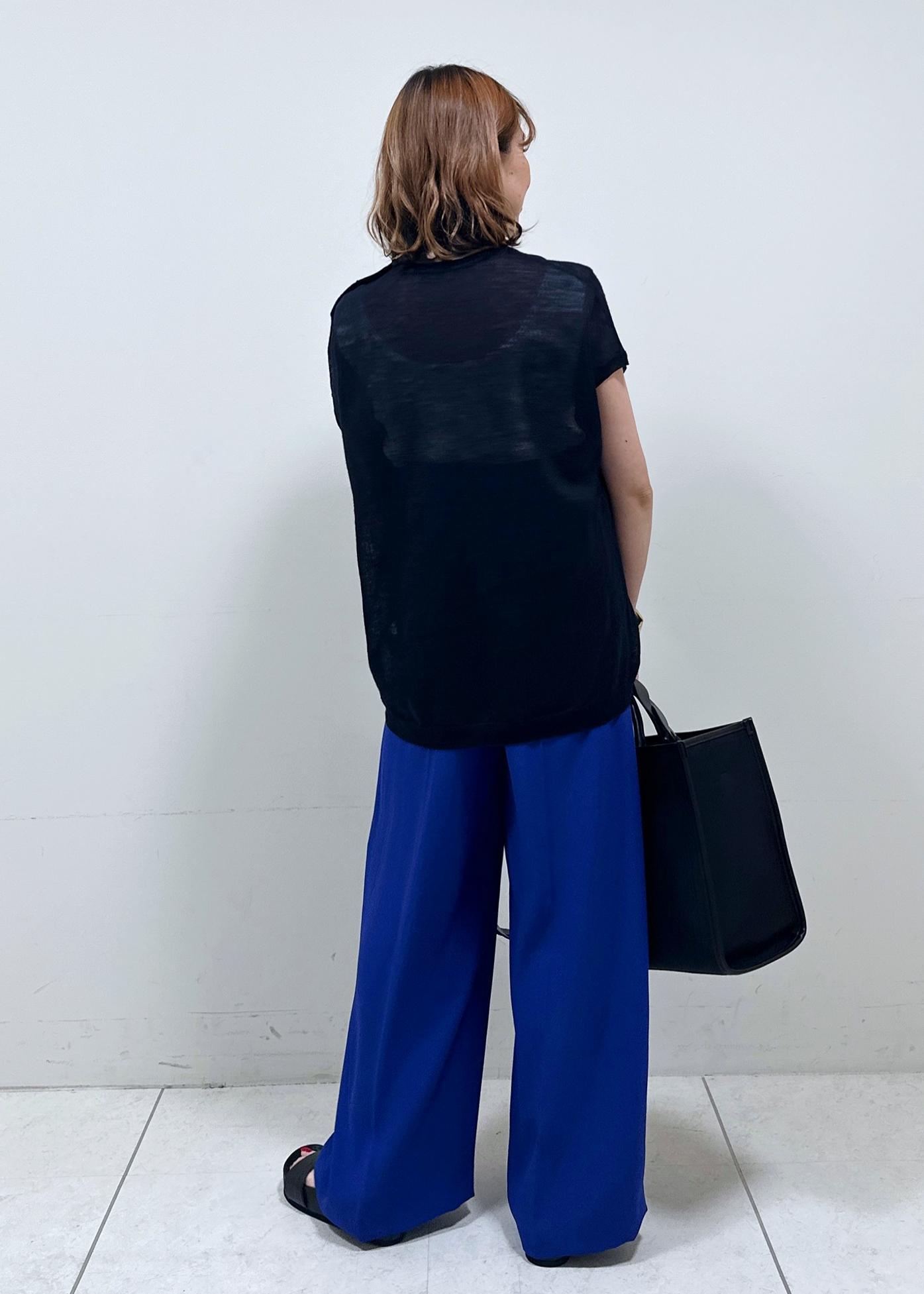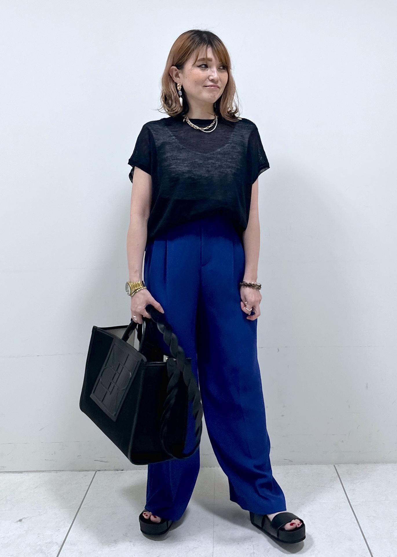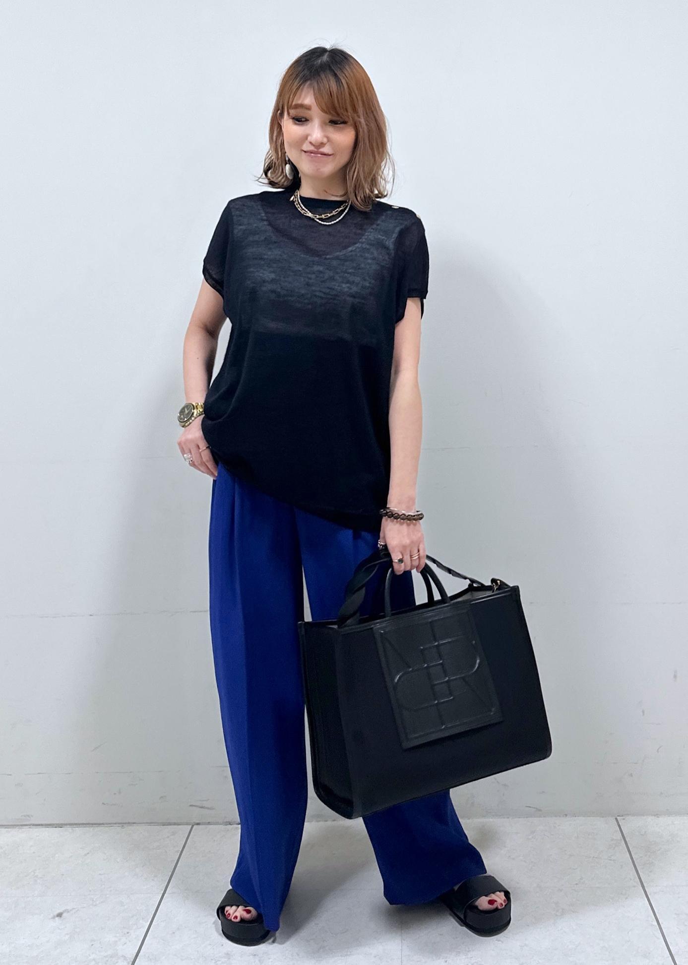シアー感もあり、見た目にも実際も涼しく着られるニットで、少しオーバーサイズなので、ゆったり着られる所も涼しく感じられるポイントだと思います☆