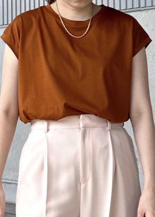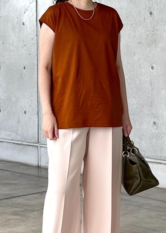 アウトレットROPÉ【接触冷感・洗える・洗濯耐久あり】ノースリーブTEEブラウン / F¥8,470レビュー身長161㎝で普段38サイズを着用。