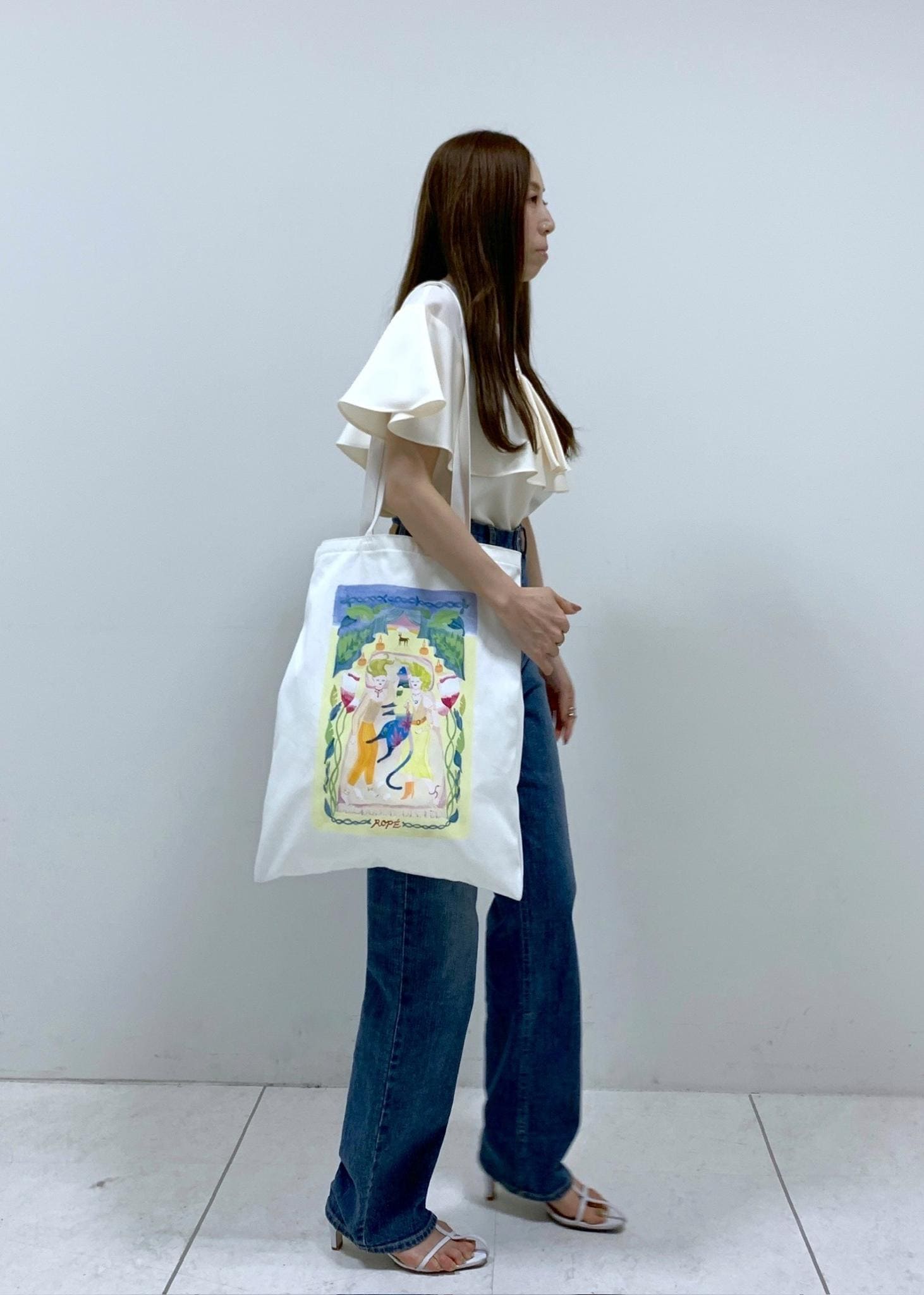 アウトレットROPÉ【Kei Nagayama for ROPE'】イラスト入りトートバッグ【A4対応】ホワイト / F¥4,400レビューイラストレーターの永山恵さんコラボのトートバックです。ロペ の夏のテーマである「ROMANTICSAFARI」から連想される情景を永山さんならではの色彩豊な構成と独特な揺らぐタッチで描いたイラストが目を引きます。