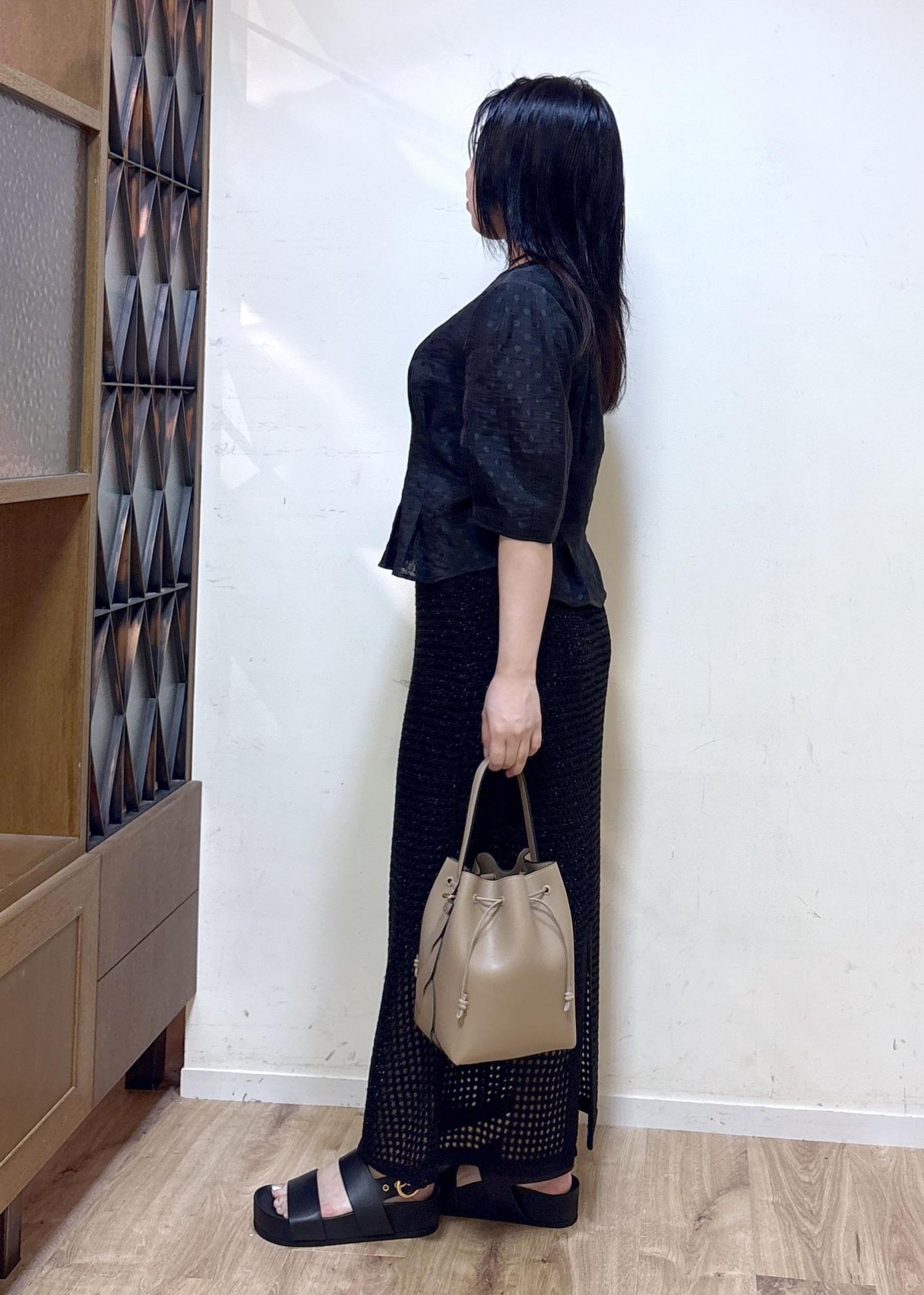 光沢感やシアー素材で軽やかなブラックコーディネート♪
