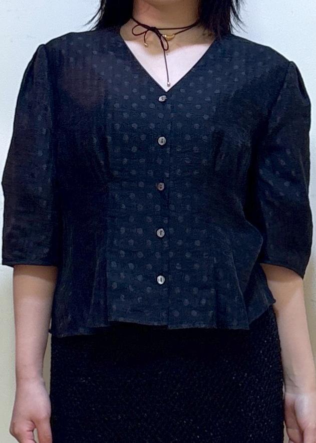 ROPÉ【洗える・羽織にもなる】Vネック5分袖パフスリーブブラウスブラック / F¥18,700レビュー152cm Fサイズ着用
