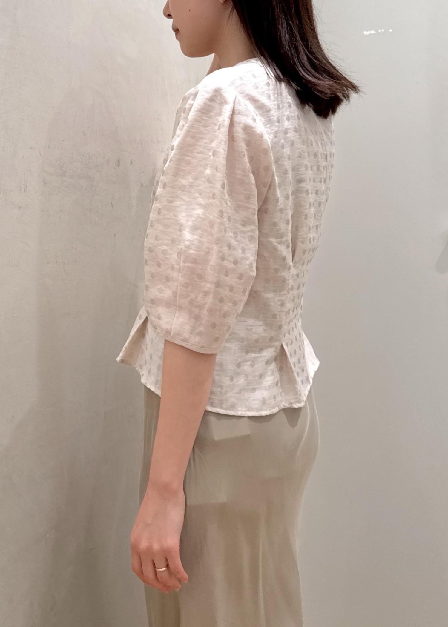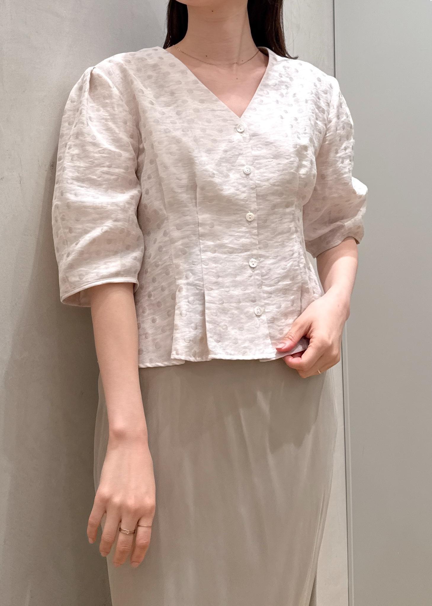 【洗える・羽織にもなる】Vネック5分袖パフスリーブブラウス