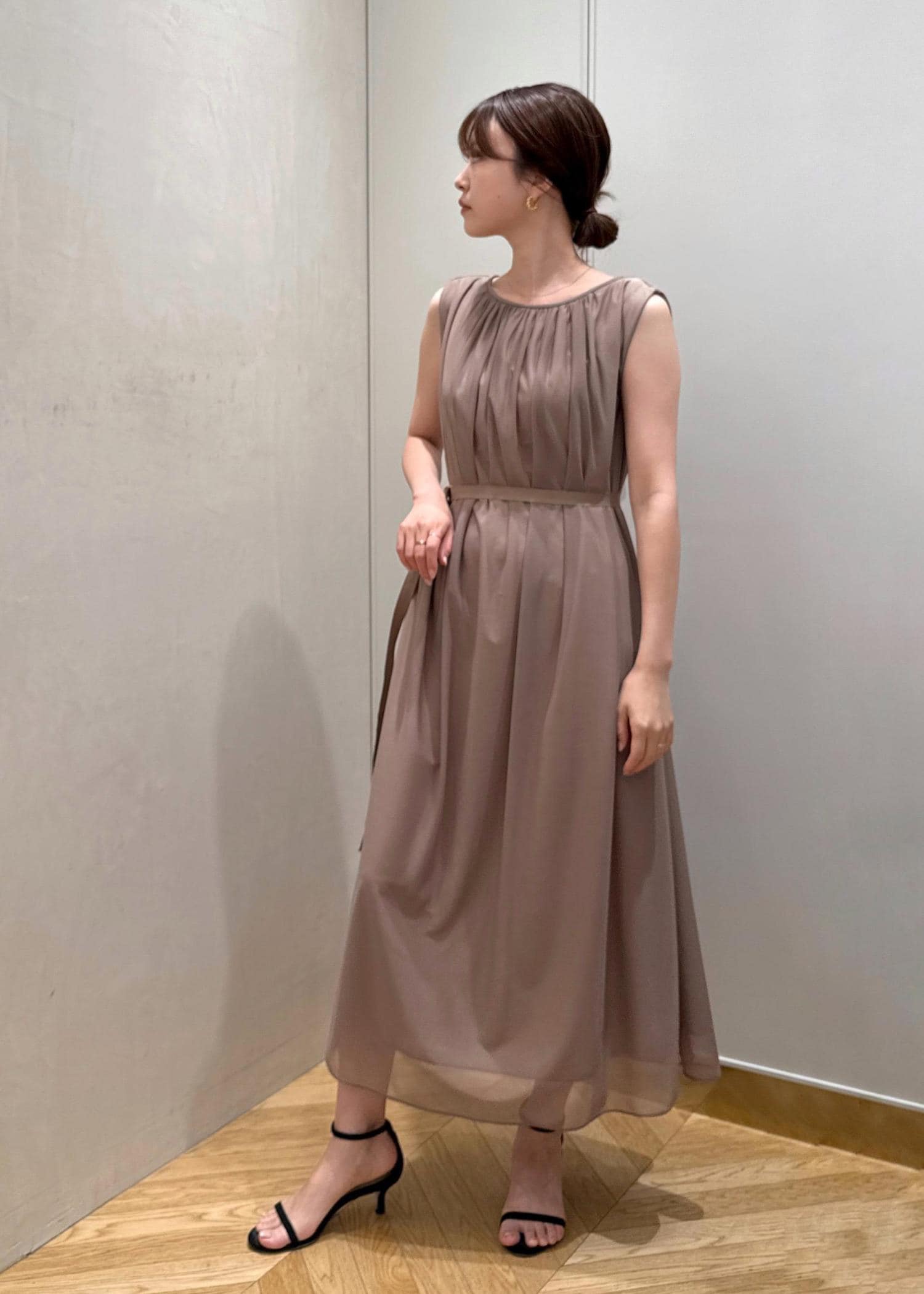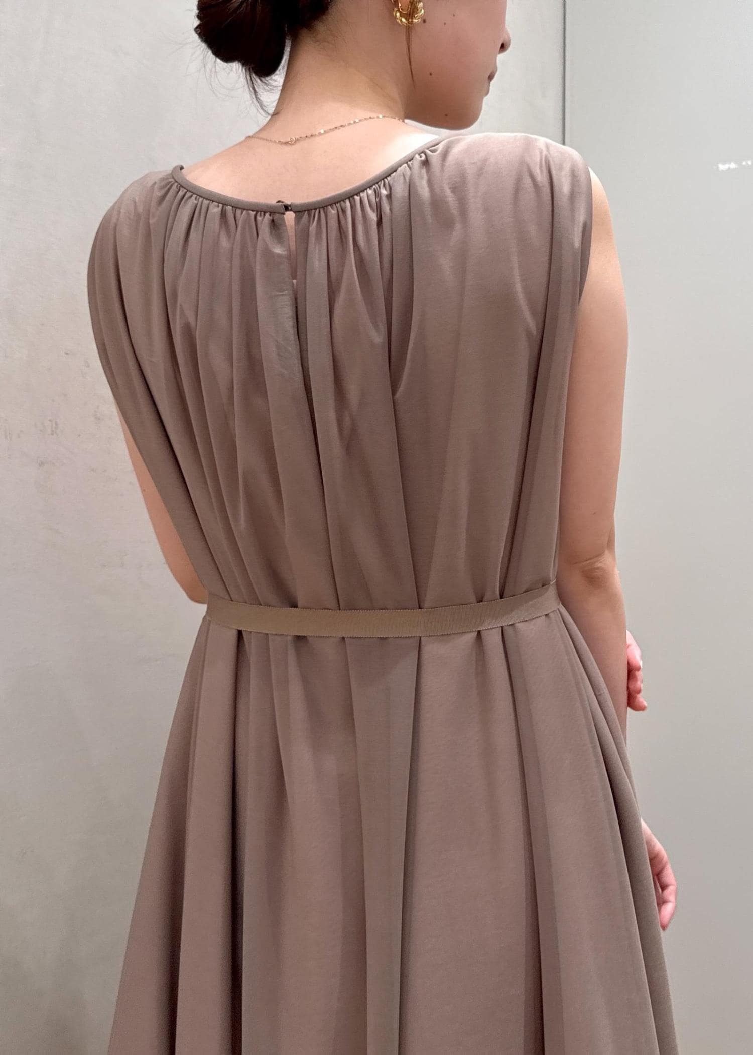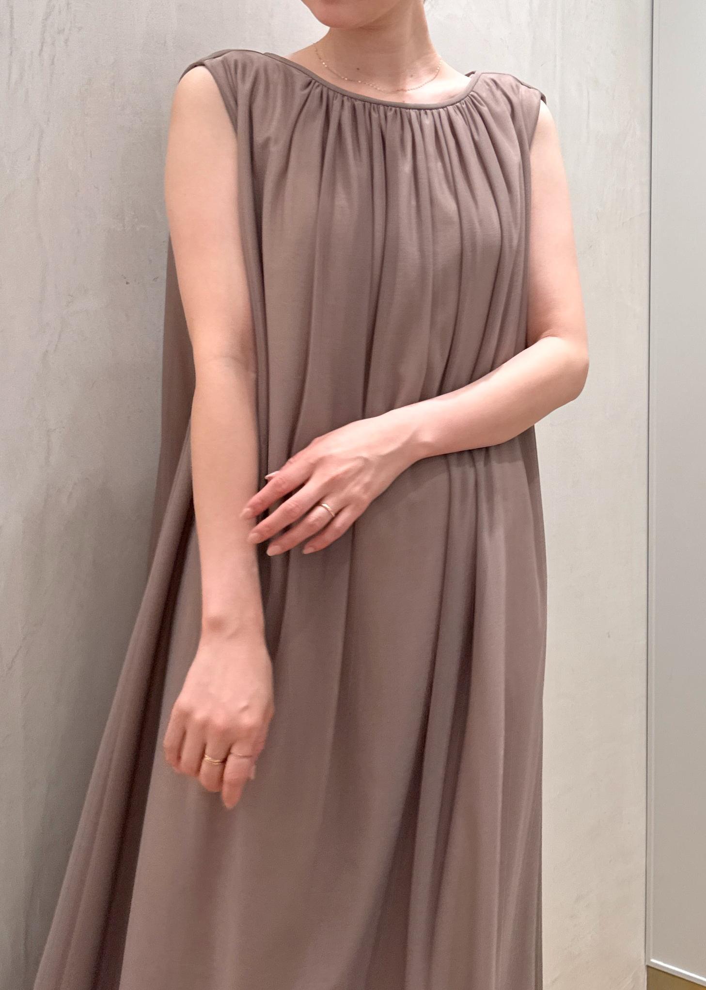 アウトレットROPÉ【洗える・新色追加】ブライトネスヤーンギャザーワンピースベージュ / 38¥17,820レビュー身長160cm、38サイズ着用。