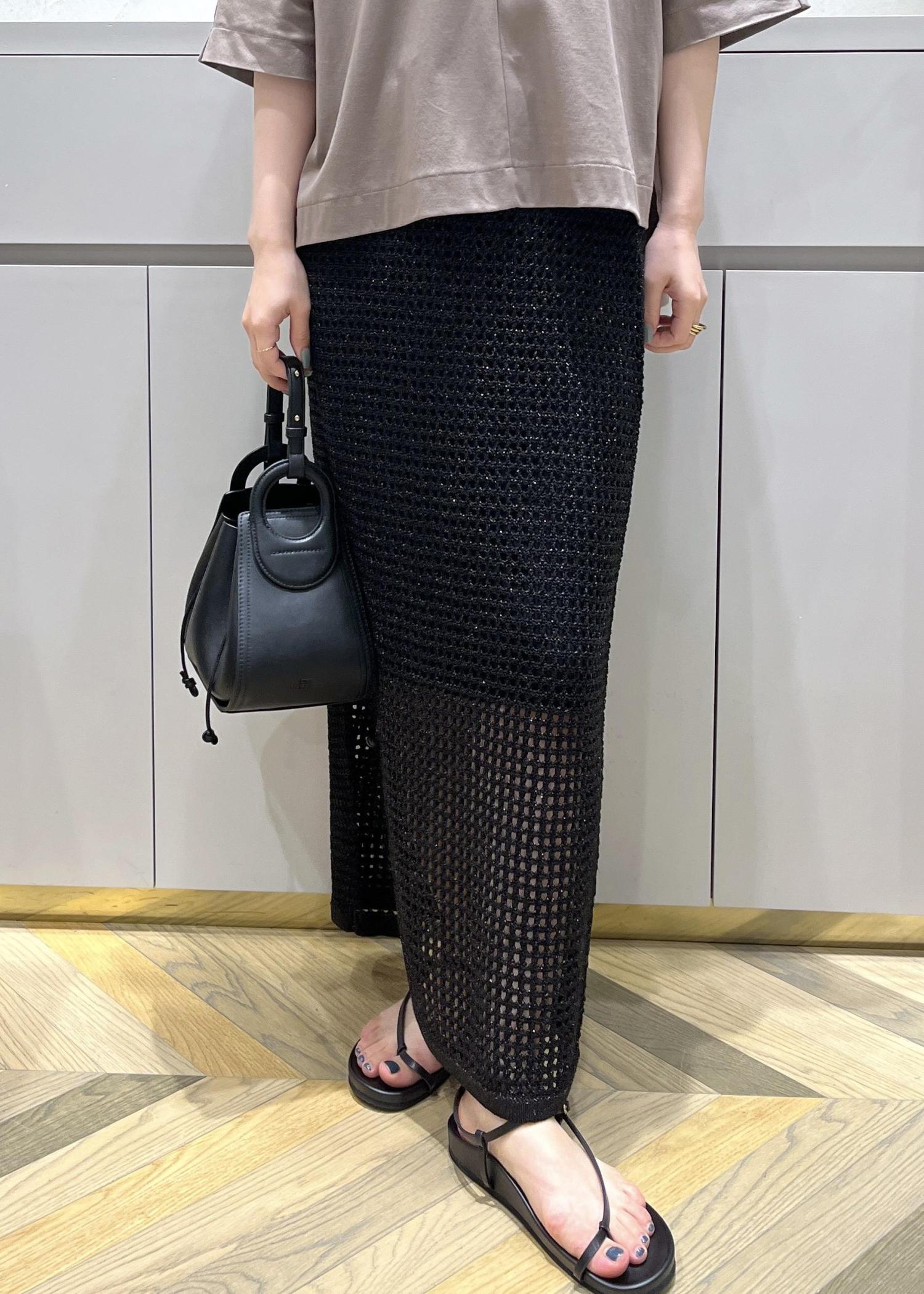 アウトレットROPÉラメメッシュスカート/セットアップ対応ブラック / 38¥13,200レビュー着丈長めに履きたかったので38サイズを履いています。着丈はくるぶしにかかるくらい。