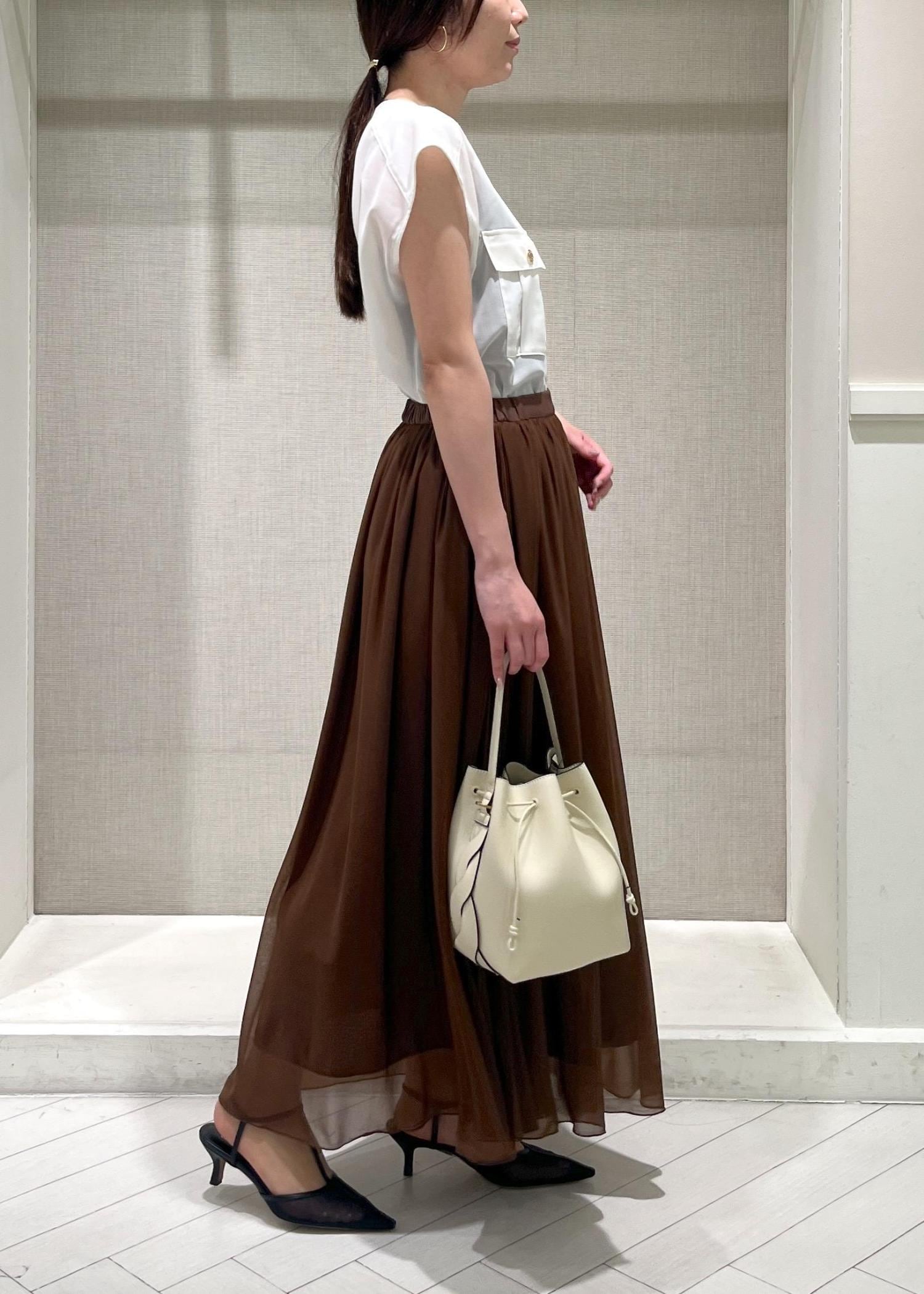 スカートは脇にプリーツが施されたデザインで、歩くたびに動きが生まれるのでエレガントな印象に◎