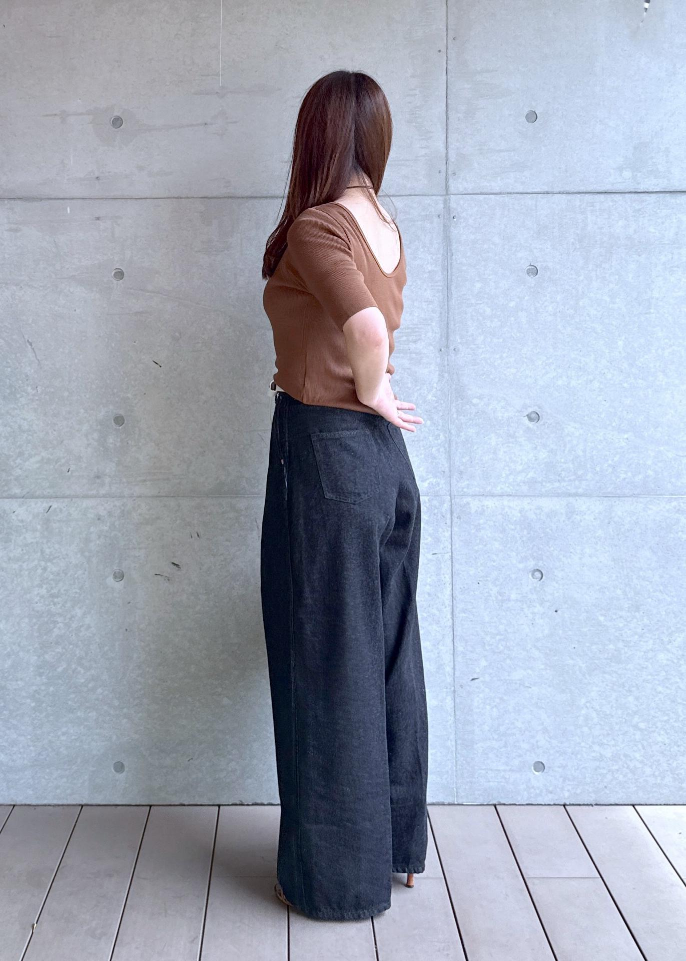 ROPÉ【洗える】ワンタック ワイドデニムパンツブラック / 38¥27,500レビュー身長162㎝で38サイズを着用しています。