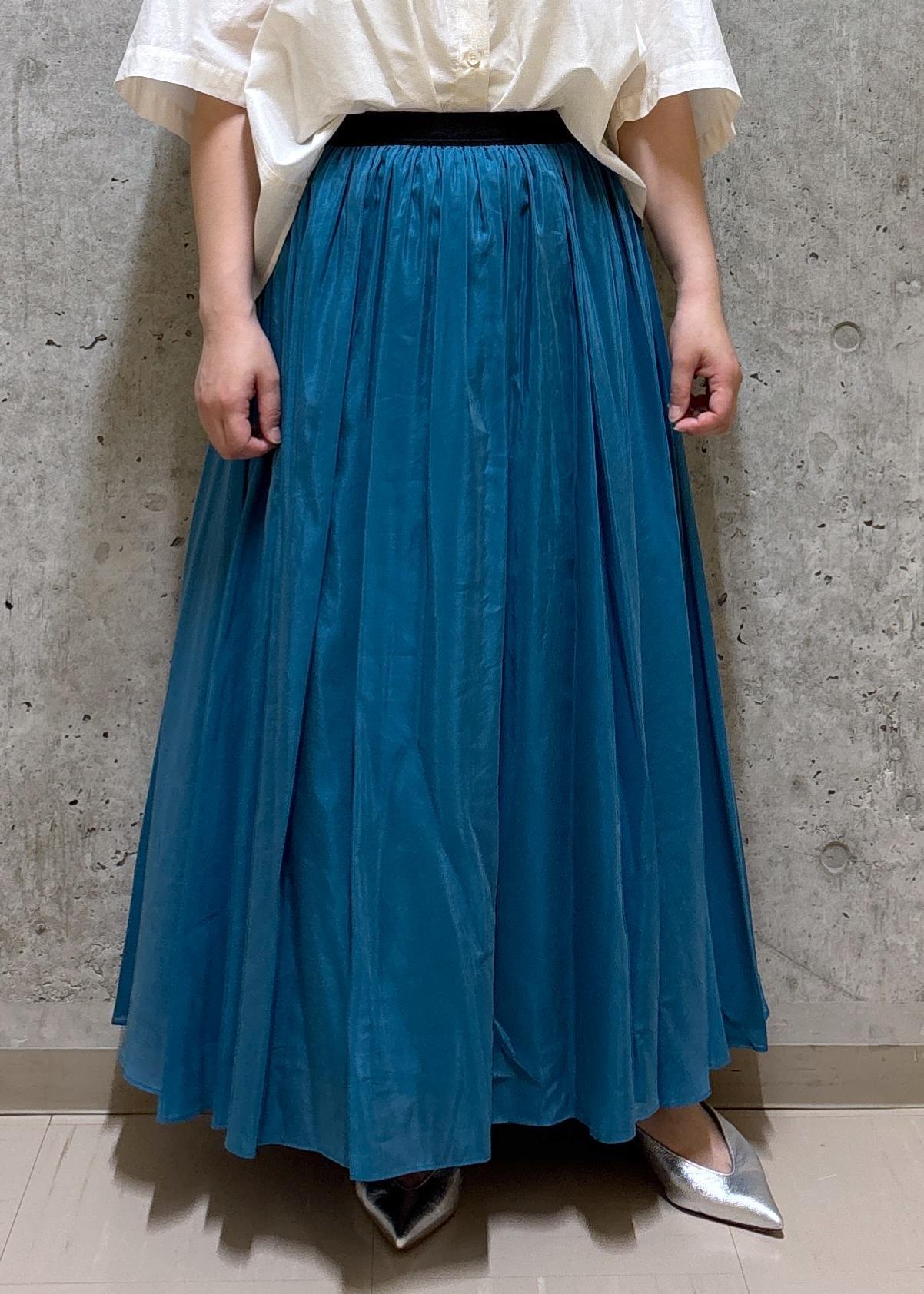 アウトレットROPÉ【洗える】コットンシルクスカートターコイズ / F¥11,000レビュー152cmでFサイズ着用