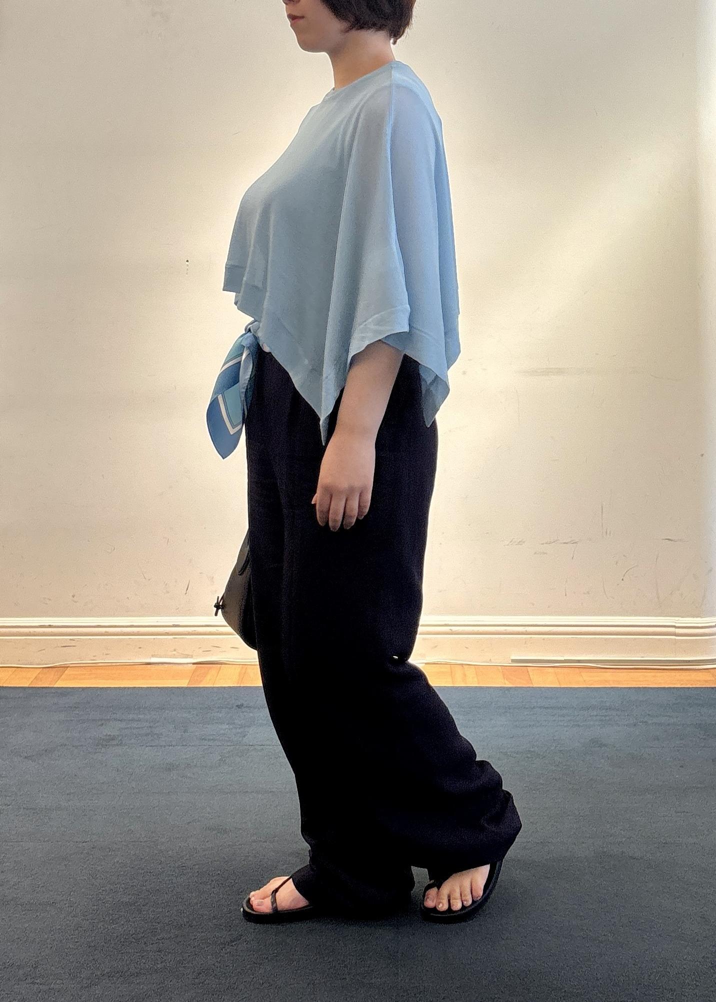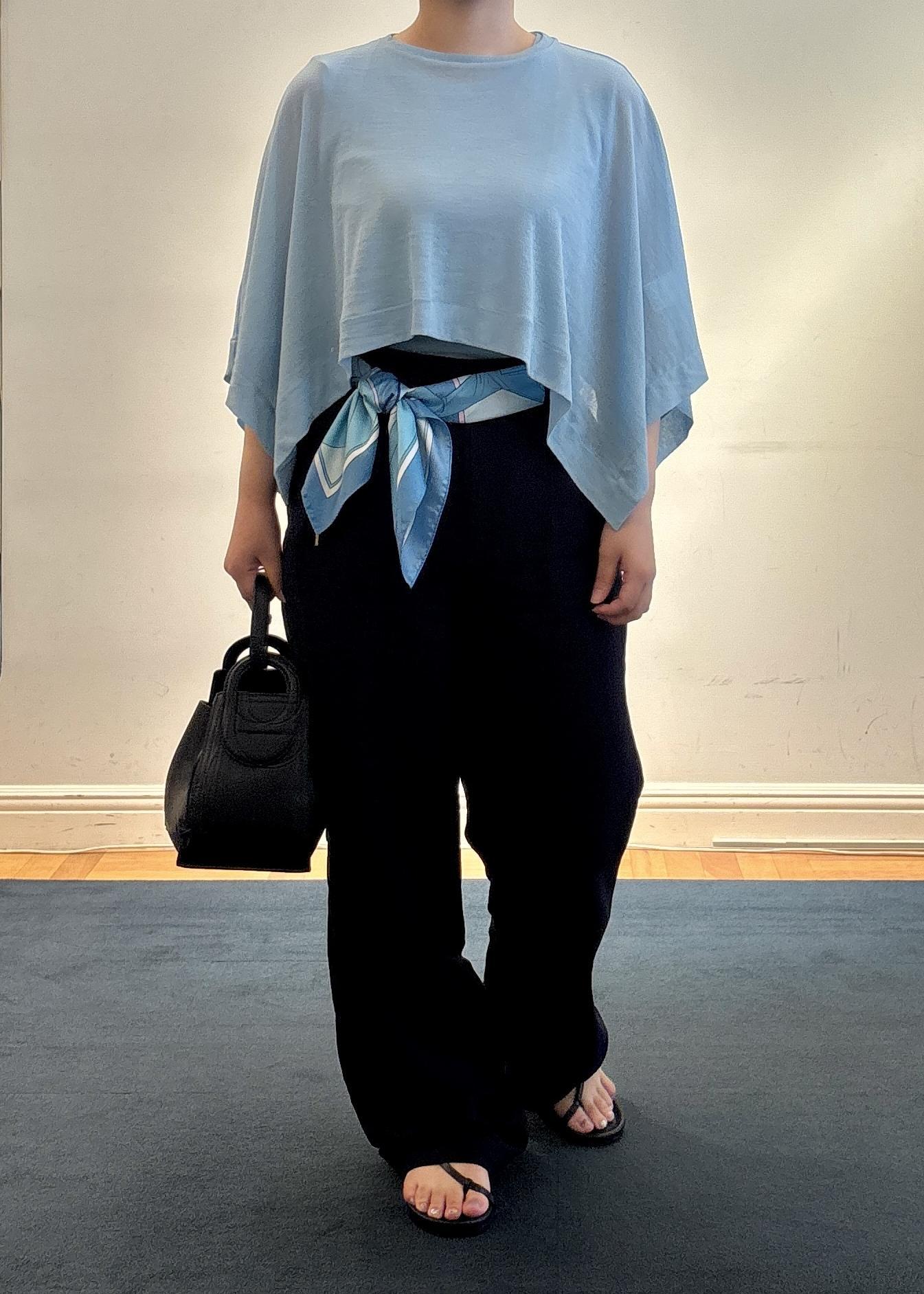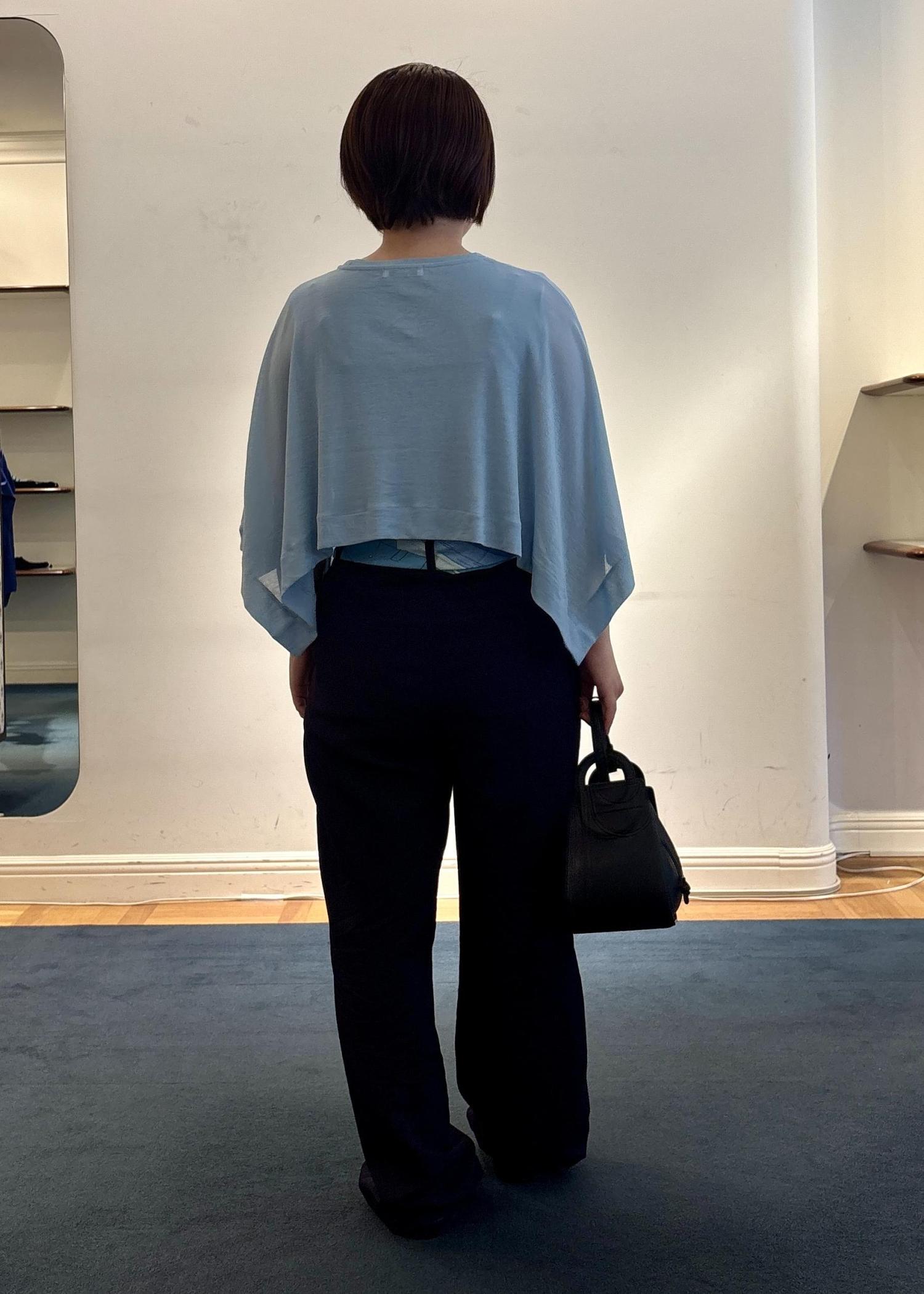 ケープはノースリーブのワンピースなどに合わせていただくとお袖ができ、スタイリングのワンポイントになります!