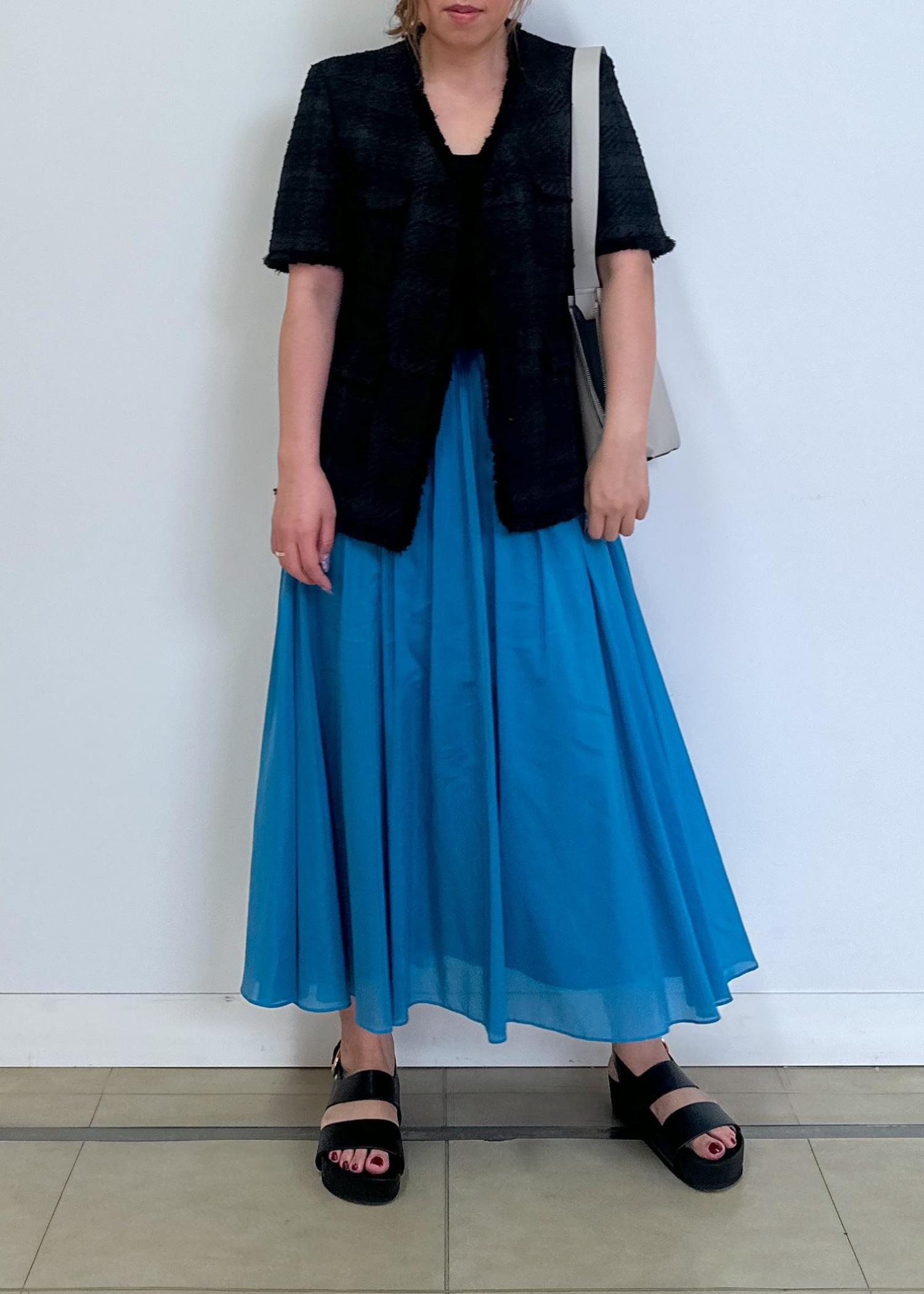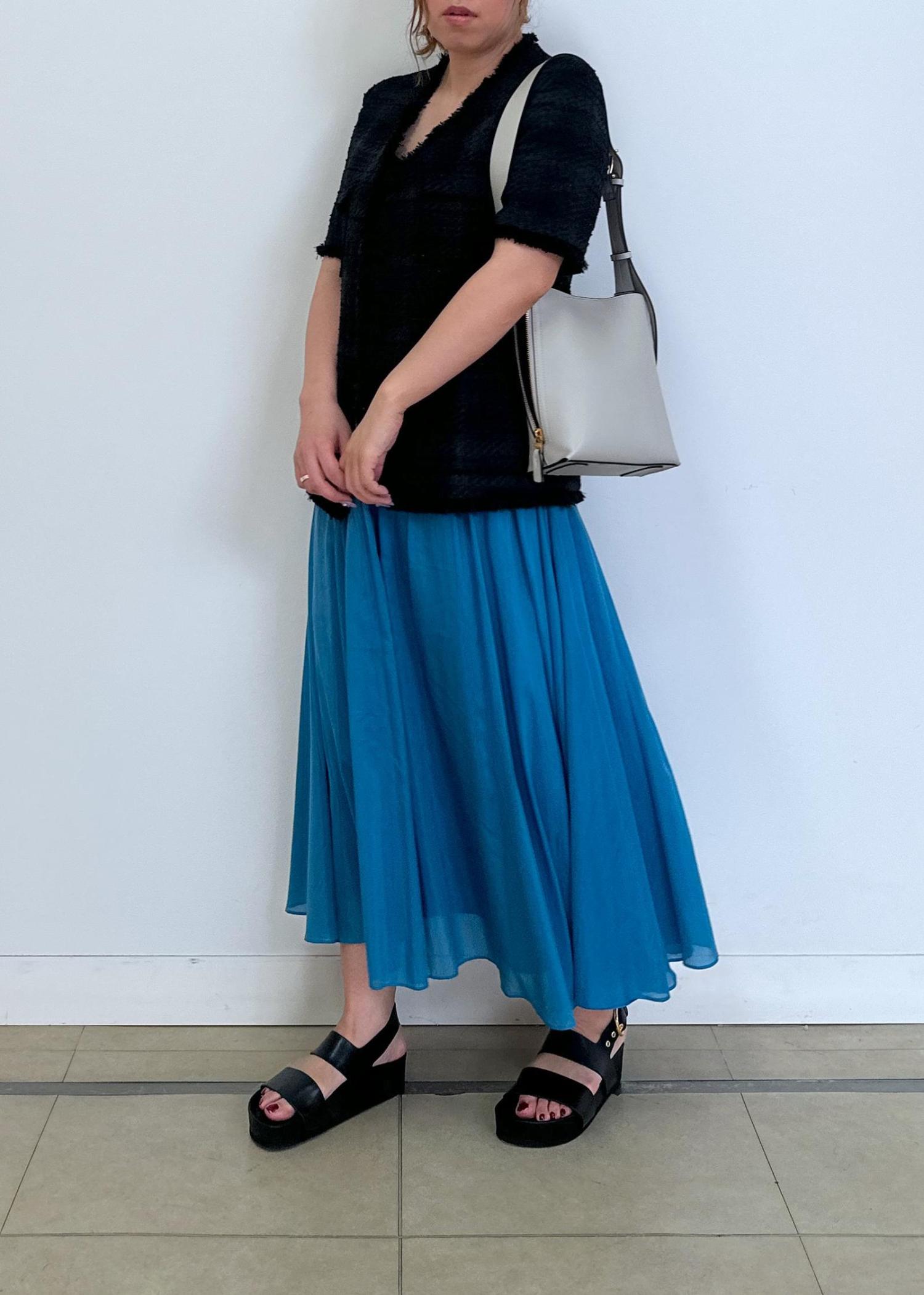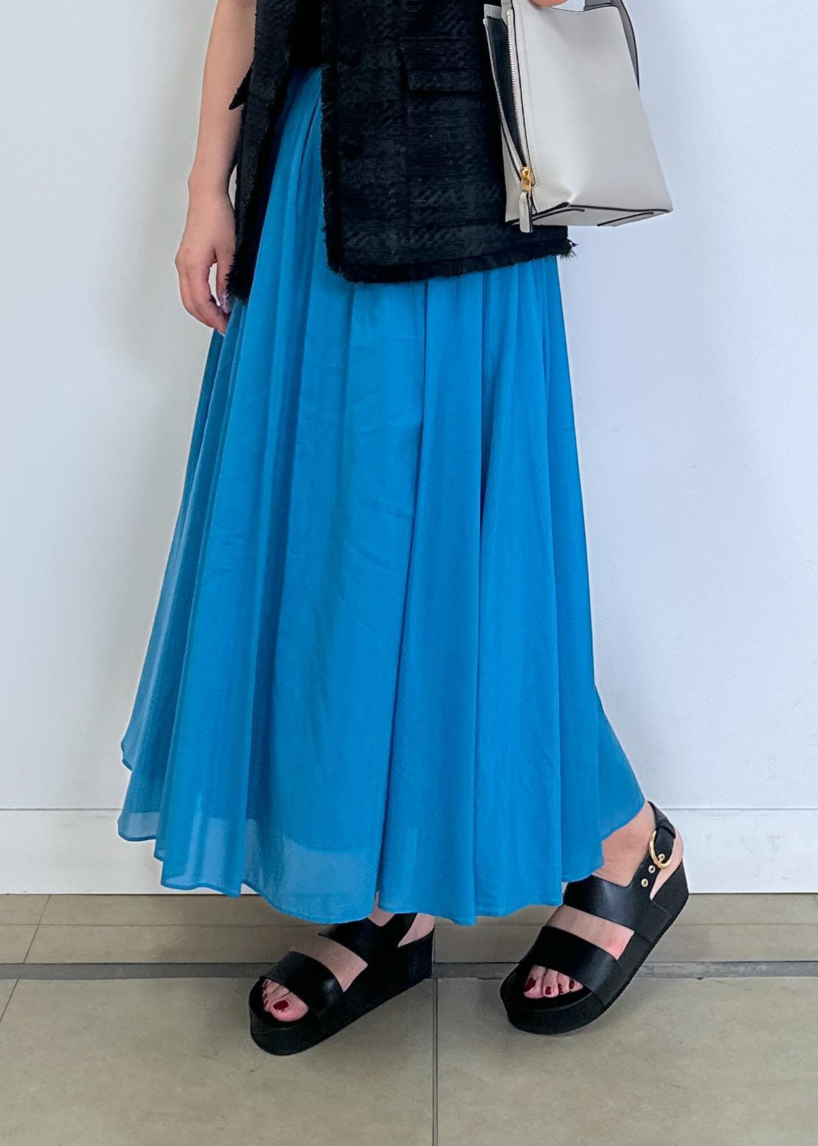 アウトレットROPÉ【洗える】コットンシルクスカートターコイズ / F¥11,000レビューウエストゴムで楽ちんです♪トップスインもしやすいので、少し長めのトップスもインしてすっきり見えします。肌触りもよく軽いので涼しく着ていただけます。