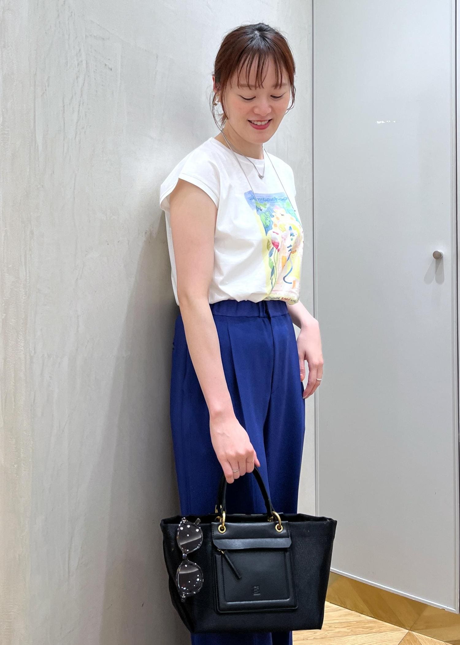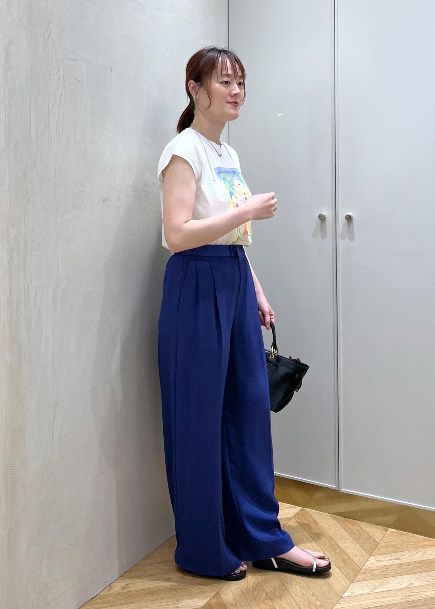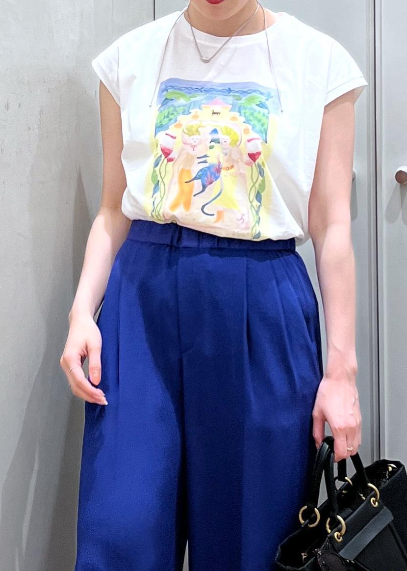 プリントには色々なカラーが入っていますので、カラーに合わせてボトムを選ぶのも面白いなと思い、今回はブルーを合わせました!