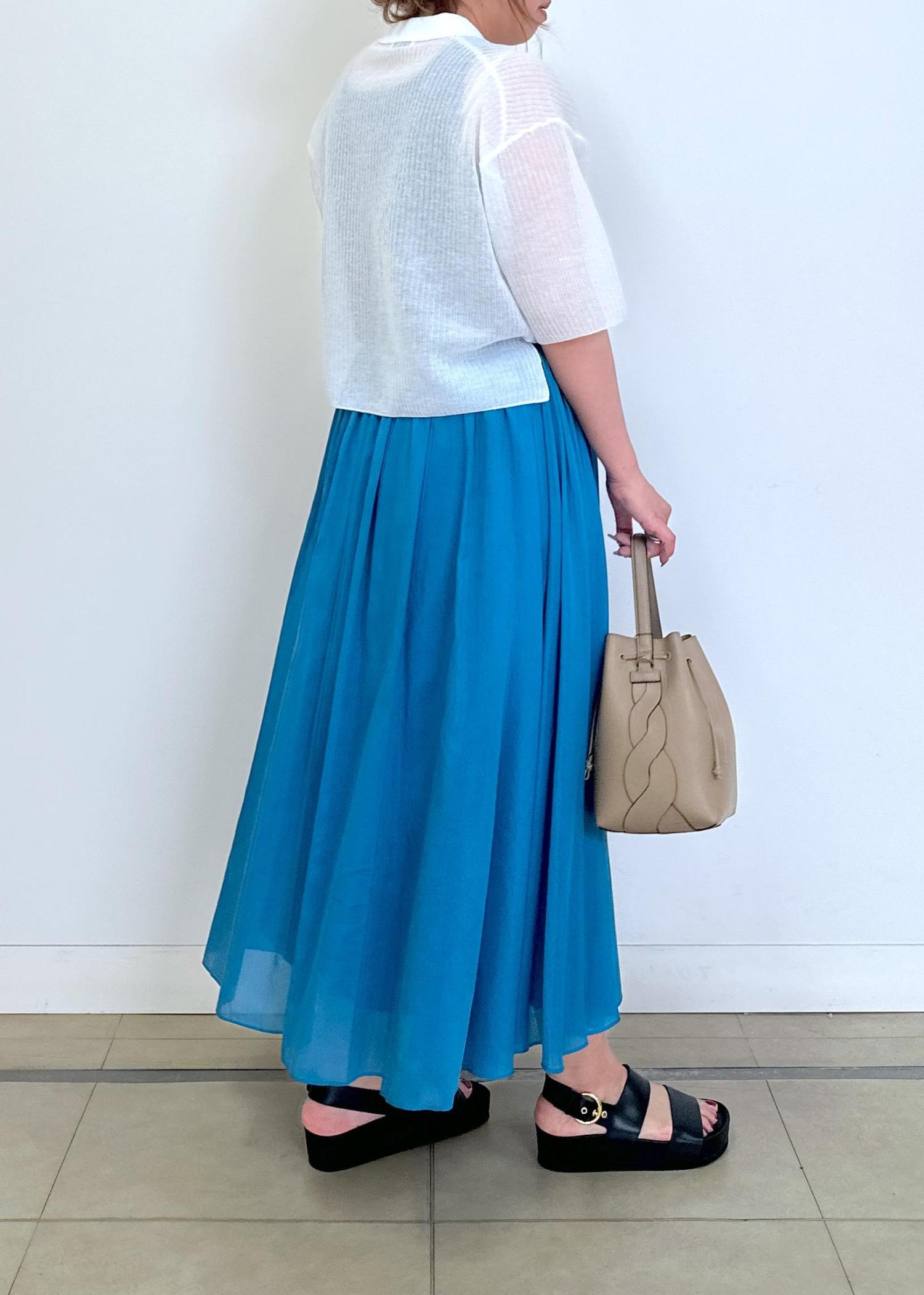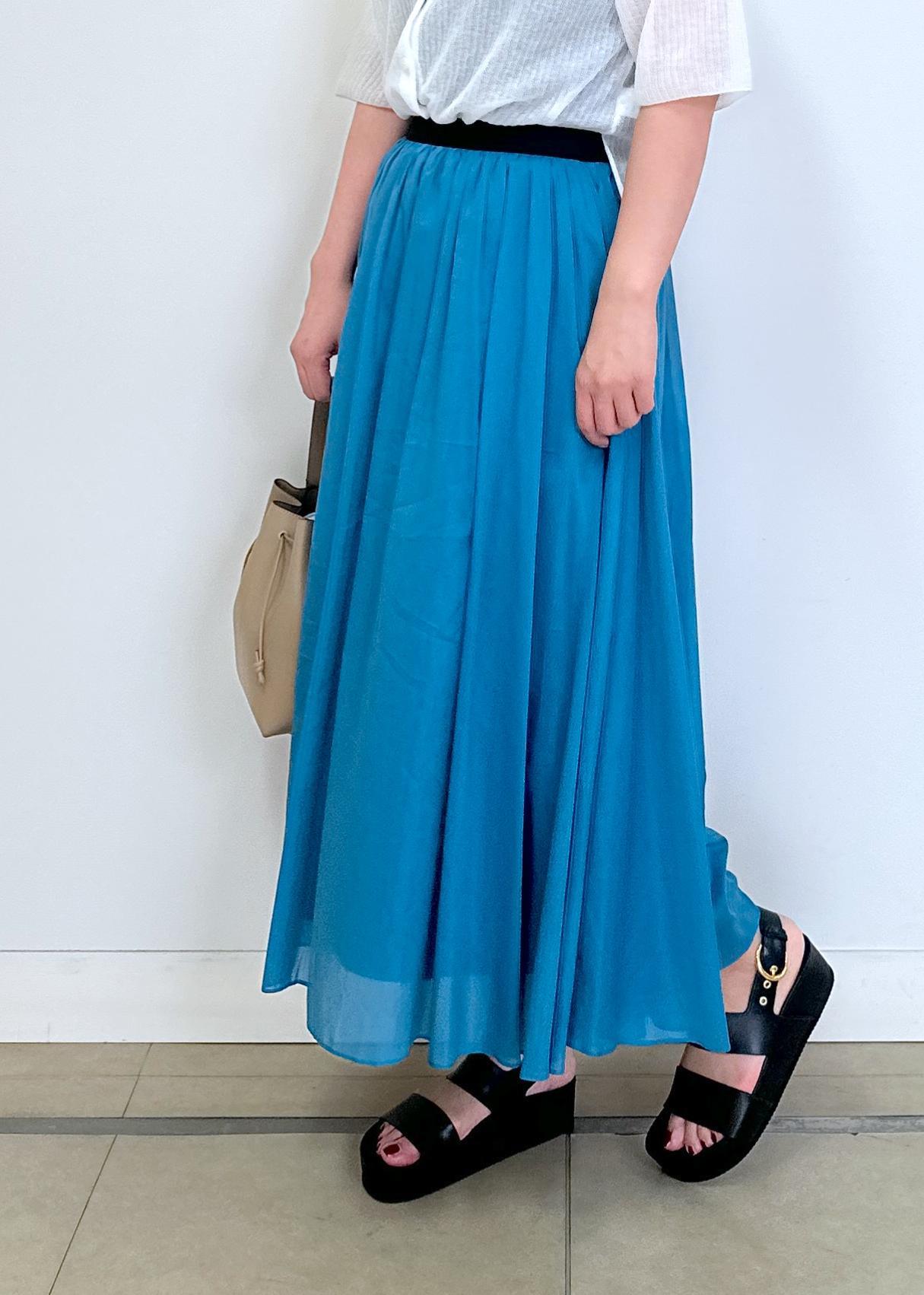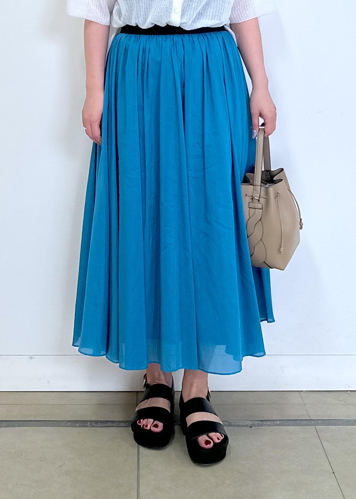 アウトレットROPÉ【洗える】コットンシルクスカートターコイズ / F¥11,000レビューウエストゴムで楽ちんです♪トップスインもしやすいので、少し長めのトップスもインしてすっきり見えします。肌触りもよく軽いので涼しく着ていただけます。