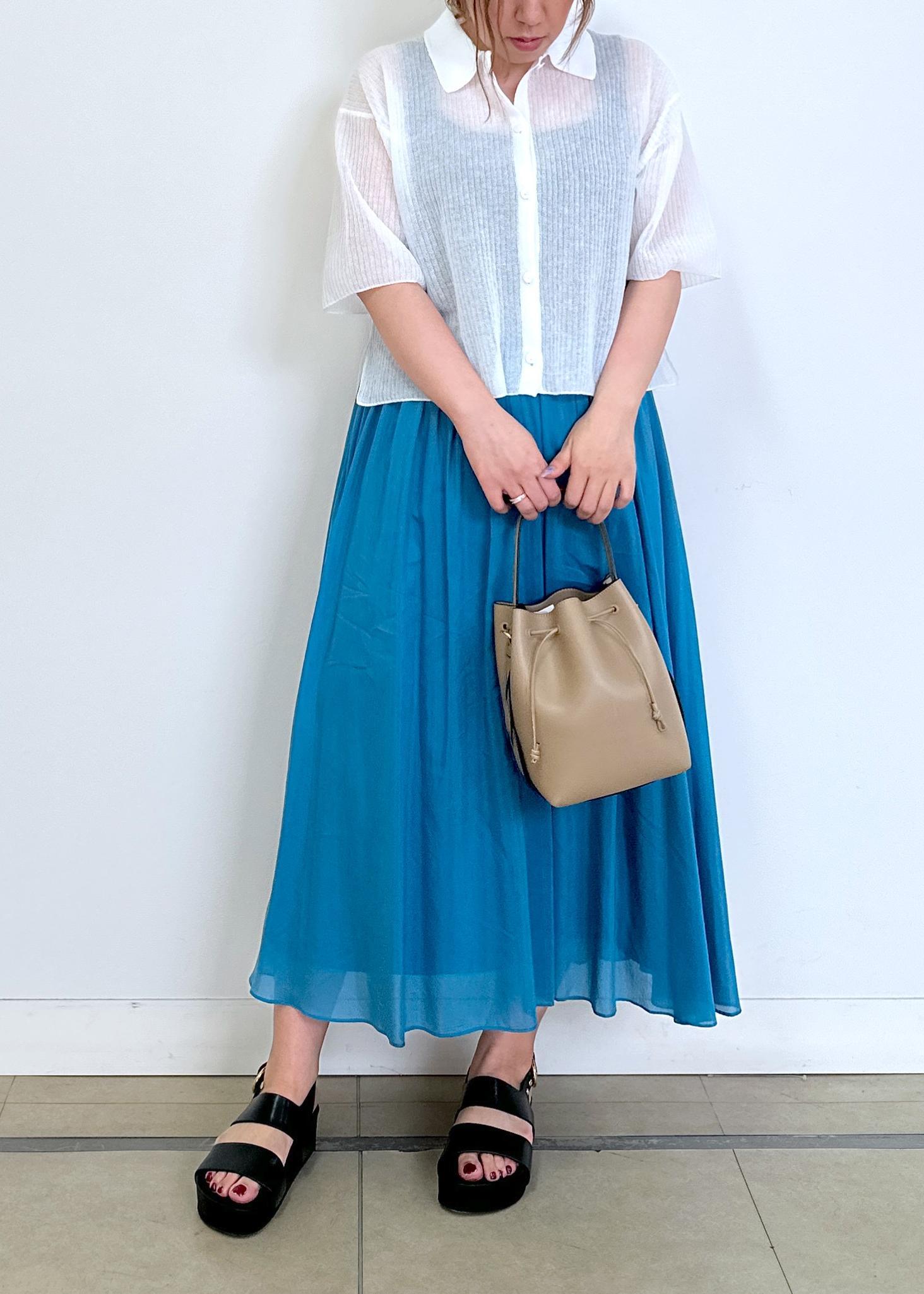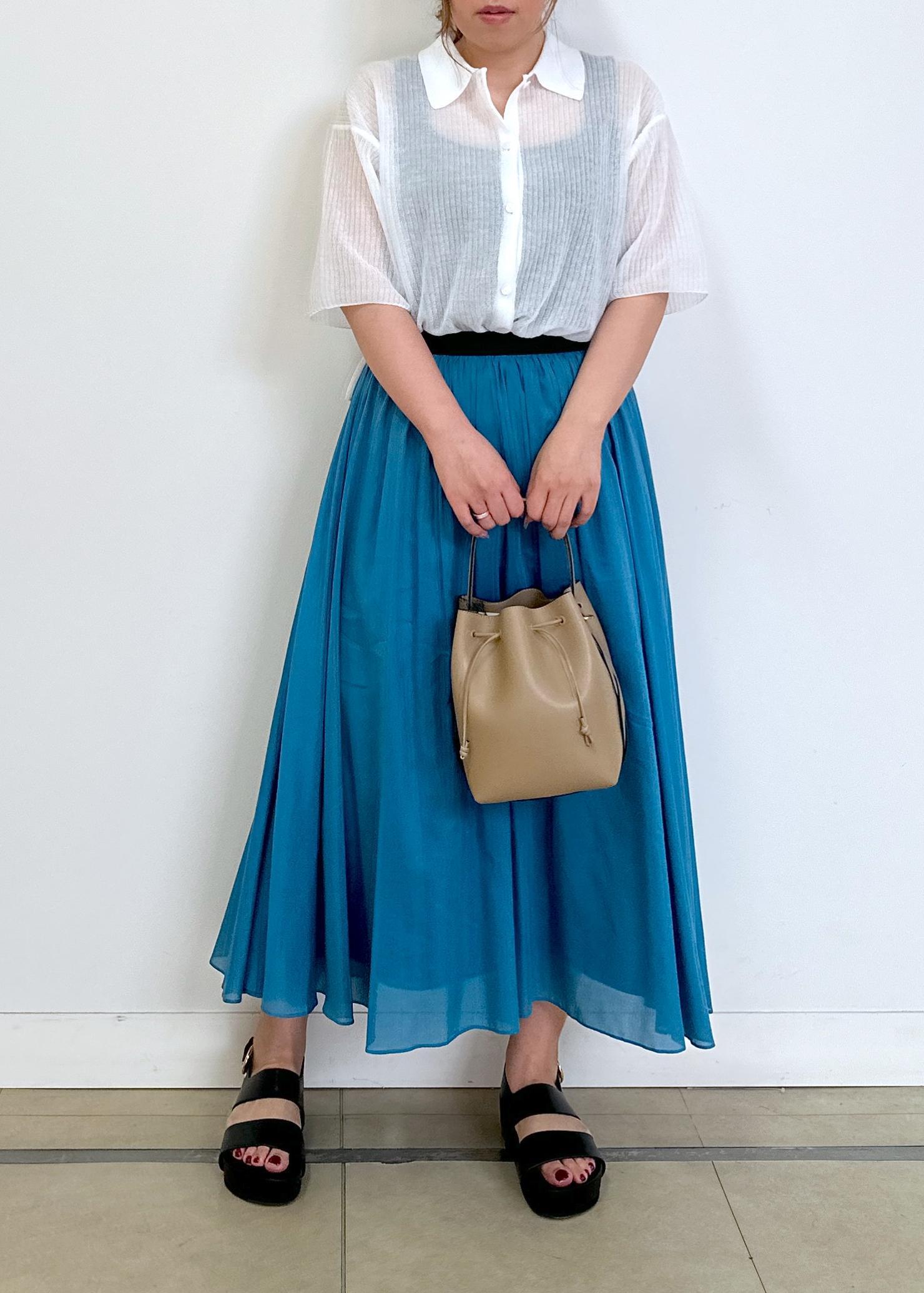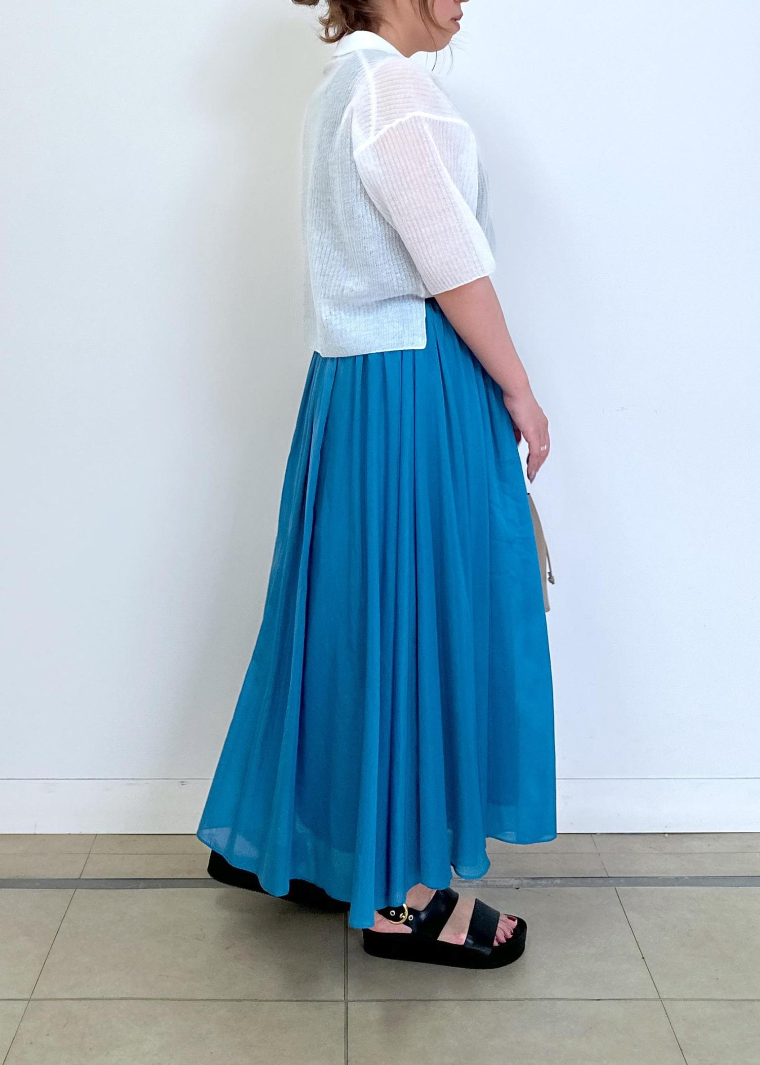 アウトレットROPÉ【洗える】コットンシルクスカートターコイズ / F¥11,000レビューウエストゴムで楽ちんです♪トップスインもしやすいので、少し長めのトップスもインしてすっきり見えします。肌触りもよく軽いので涼しく着ていただけます。