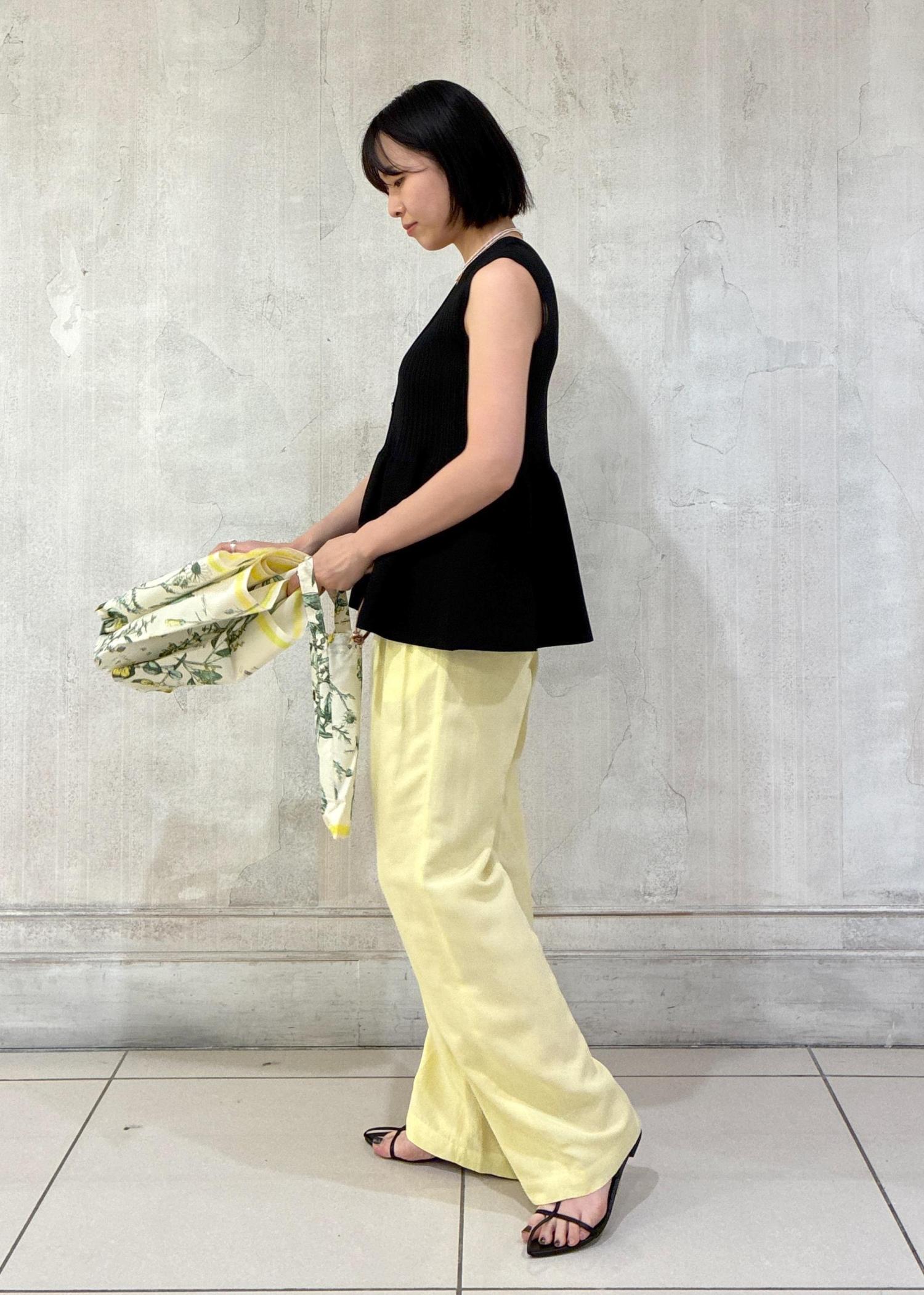 イエロートーンの爽やかな柄に一目惚れして、こちらの傘を主役にコーディネートを組んでみました!