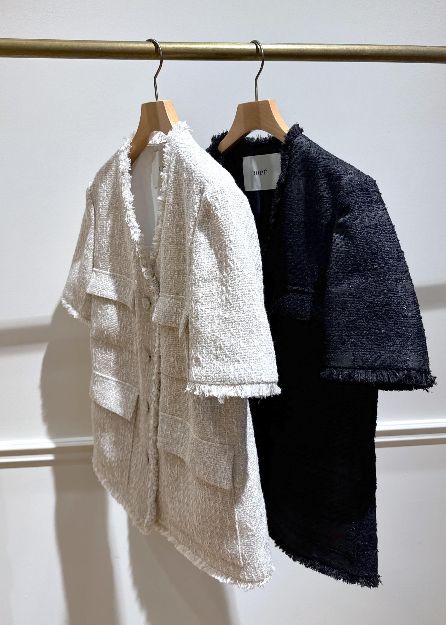 アウトレットROPÉサマーツイードハーフスリーブジャケットブラック / F¥23,100レビューすっきりと羽織れるサイズ感です。