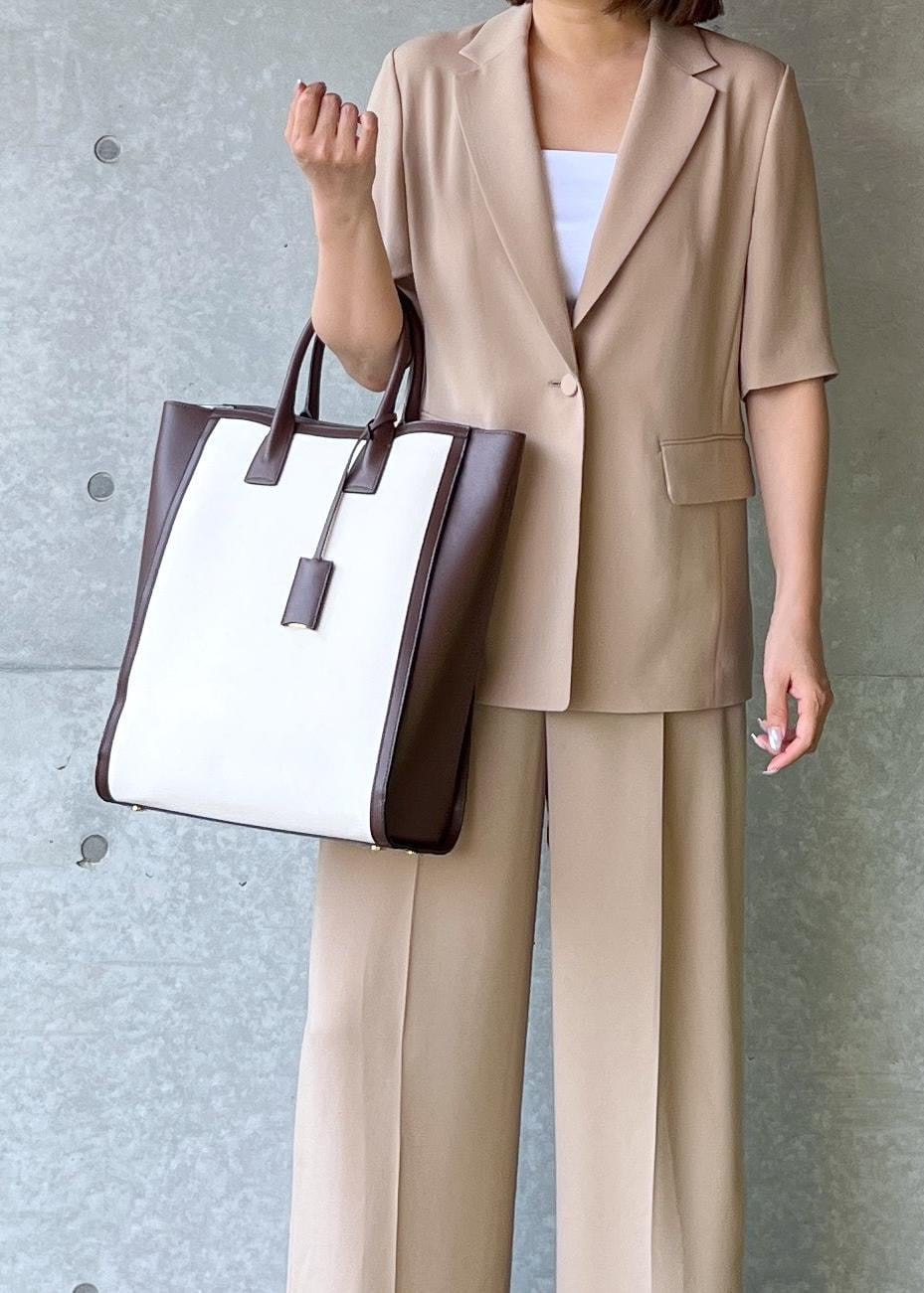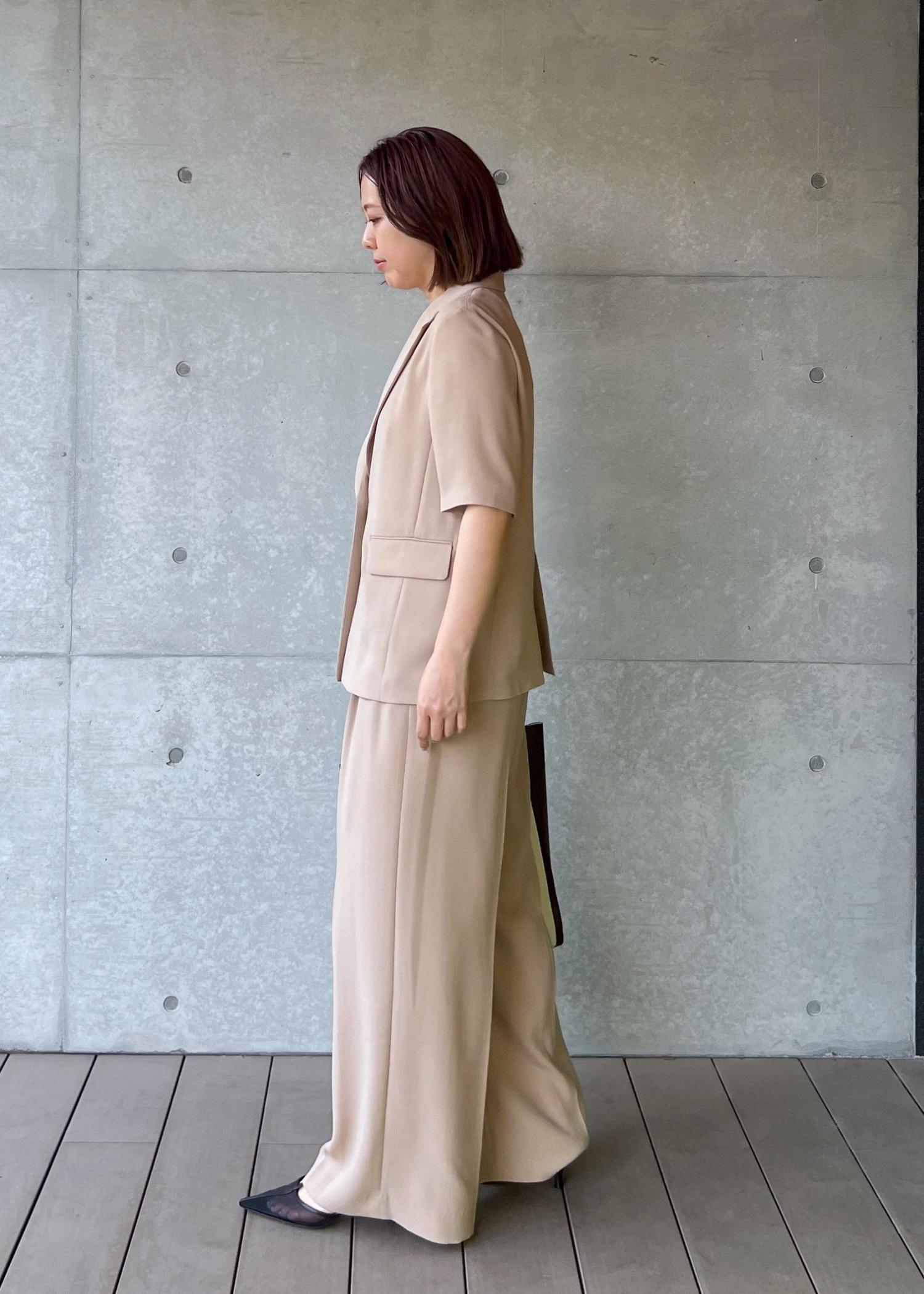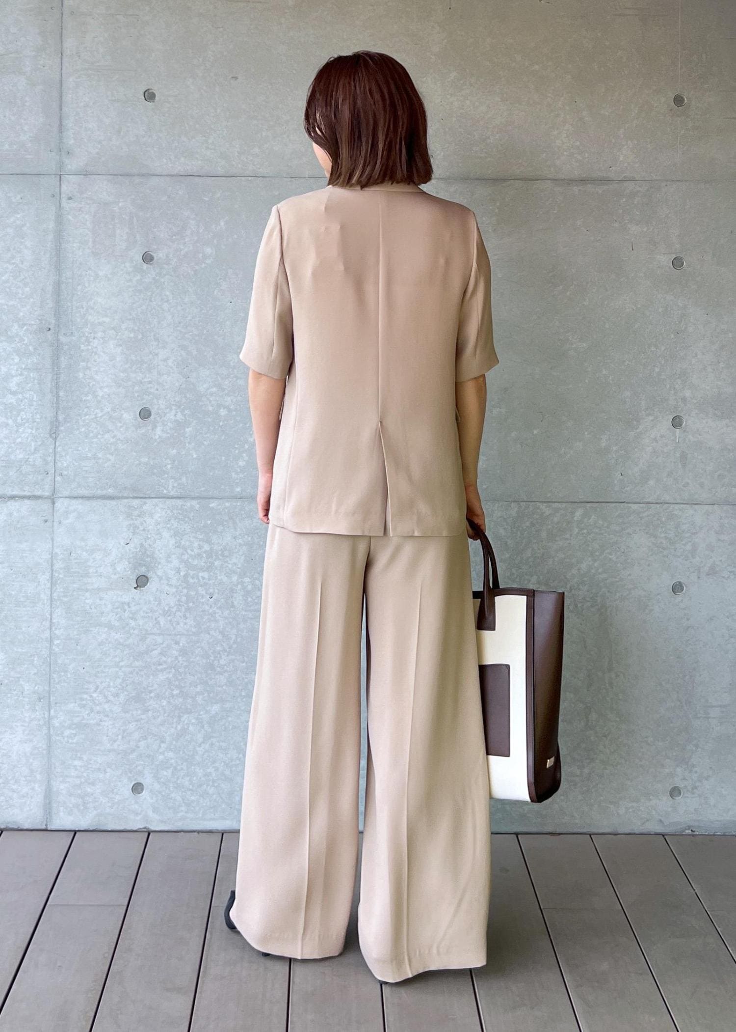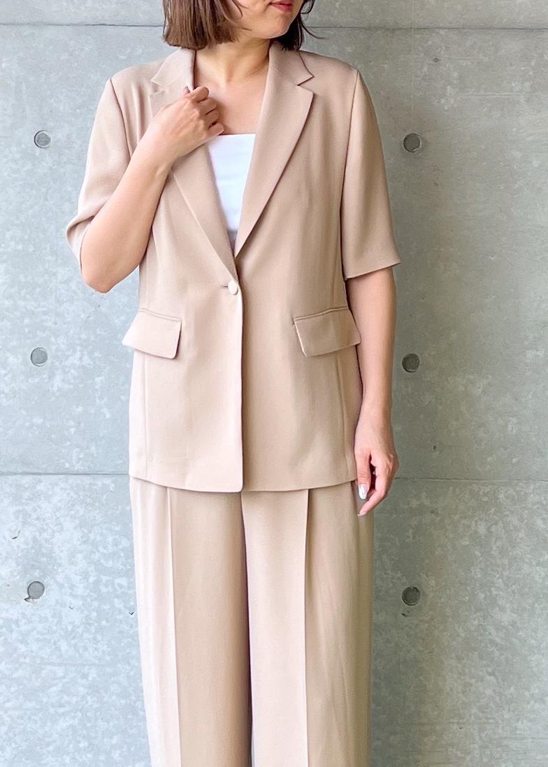 ROPÉ【洗える・カセット服・新色追加】トリアセバックサテン ハーフスリーブジャケット/セットアップ対応ベージュ / 38¥31,900レビュー身幅はゆとりがあるサイズ感。