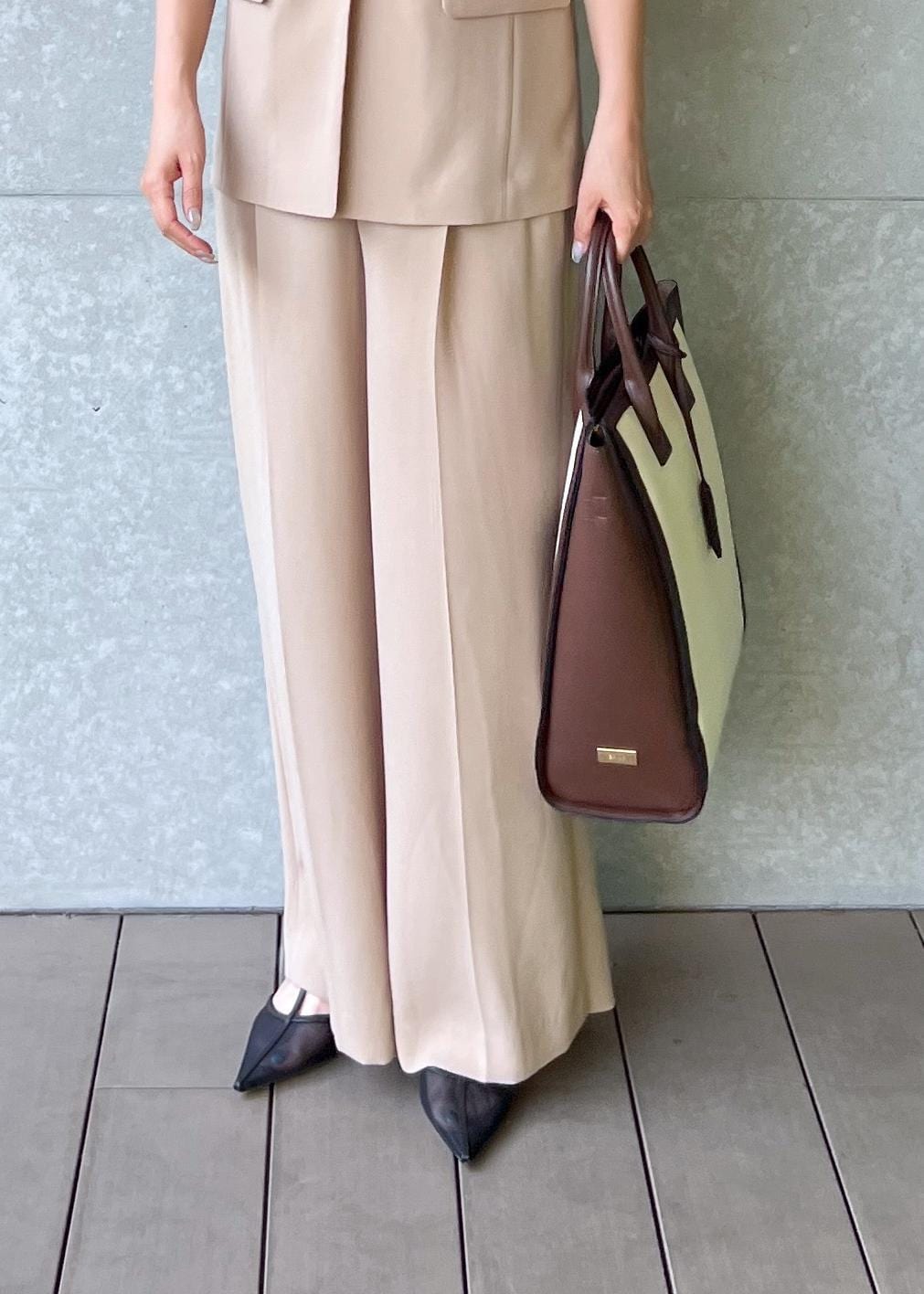 ROPÉ【洗える・カセット服】ライトトリアセイージーワイドパンツ/お仕事・通勤・セットアップ対応ベージュ / 38¥25,300レビューウエストは総ゴムで中に紐があるので調節ができます。すとんとした落ち感と肌離れしてくれるので