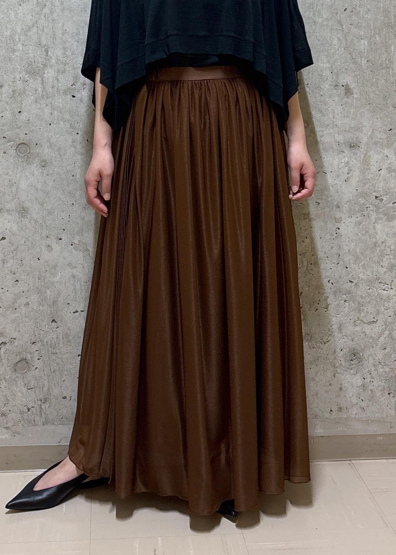 アウトレットROPÉ【洗える】ブライトネスヤーン サイドプリーツスカートブラウン /¥15,180レビュー152cm38サイズ着用