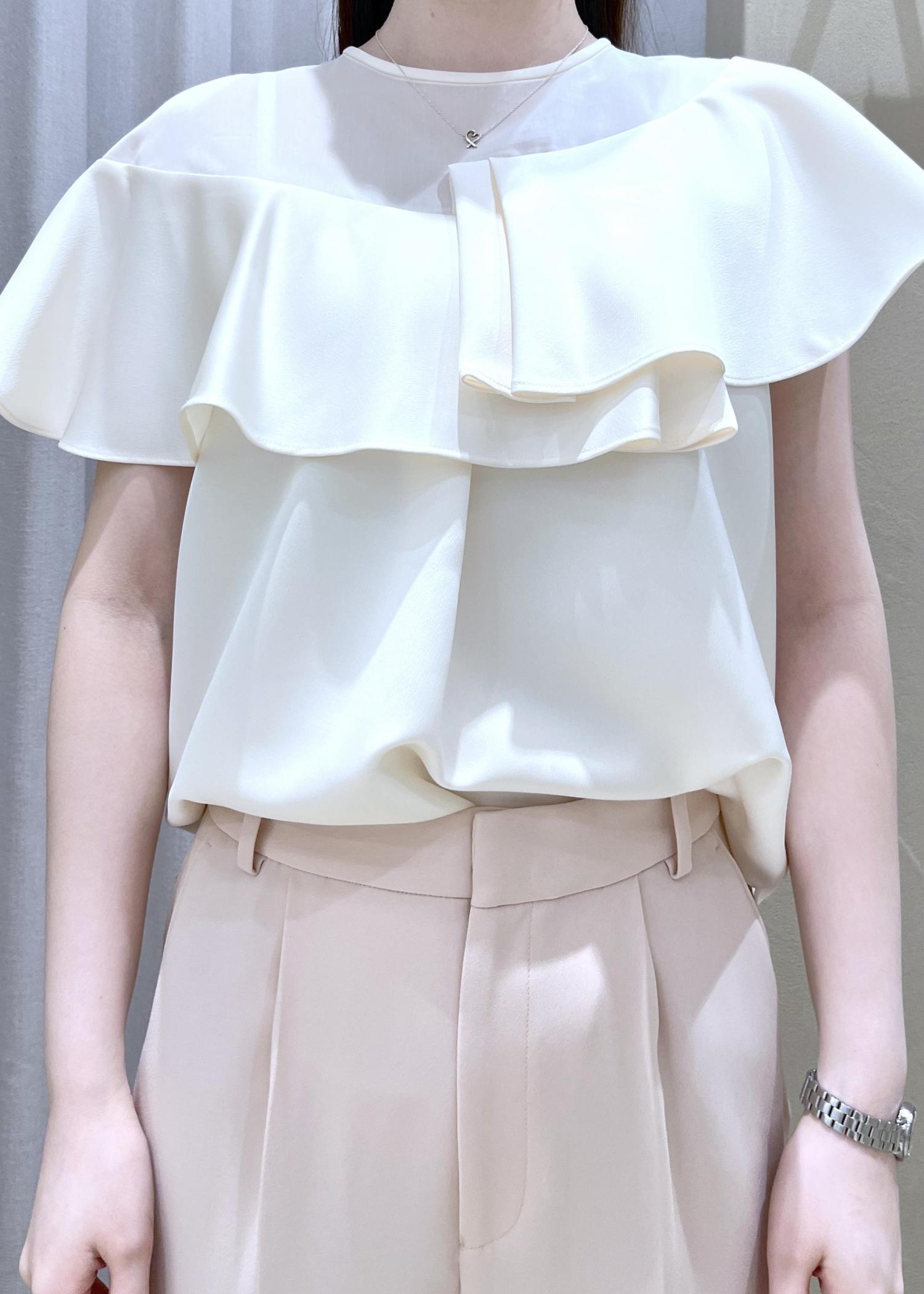 アウトレットROPÉサテンラッフルブラウス/洗えるオフホワイト / F¥12,650レビュー【着丈】