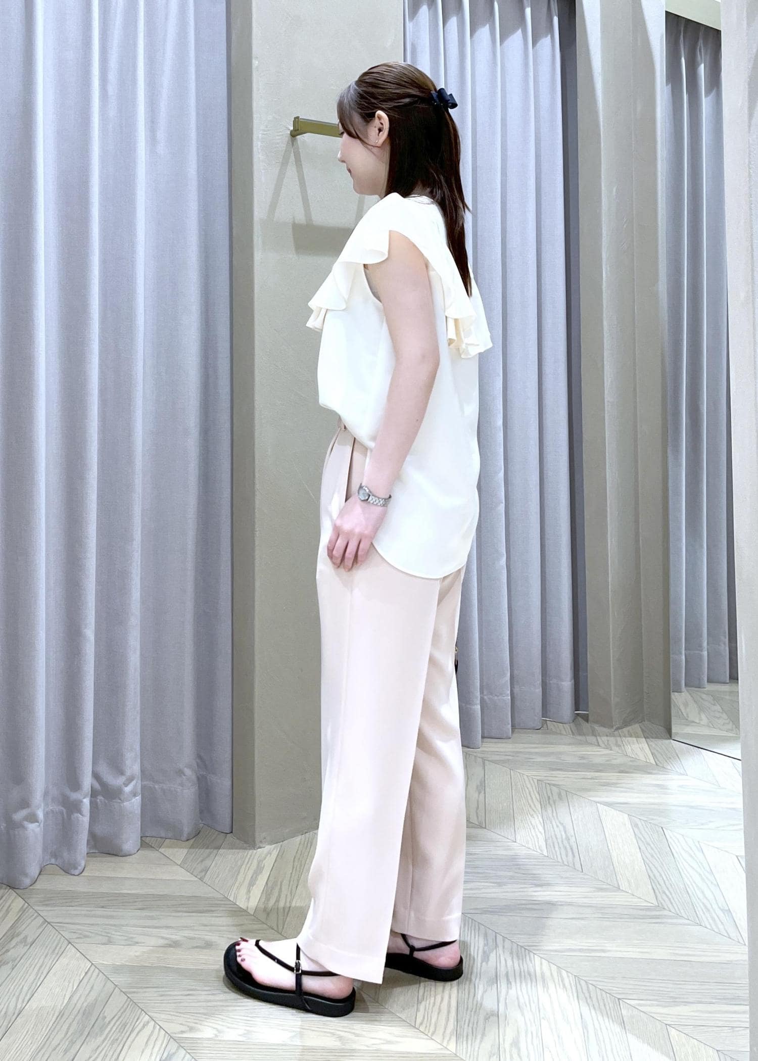 ふんわりとボリューム感のあるブラウスに、綺麗めのパンツを合わせてみました!