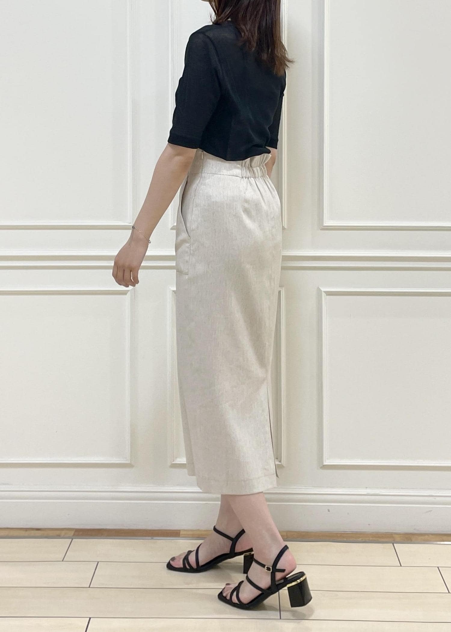 アウトレットROPÉ【洗える】サテンリネン ポケット付きタイトスカート【34サイズ/J'aDoRe・店舗限定】/25SSキナリ / 38¥9,900レビュー身長166cm、普段から38サイズを着用。
