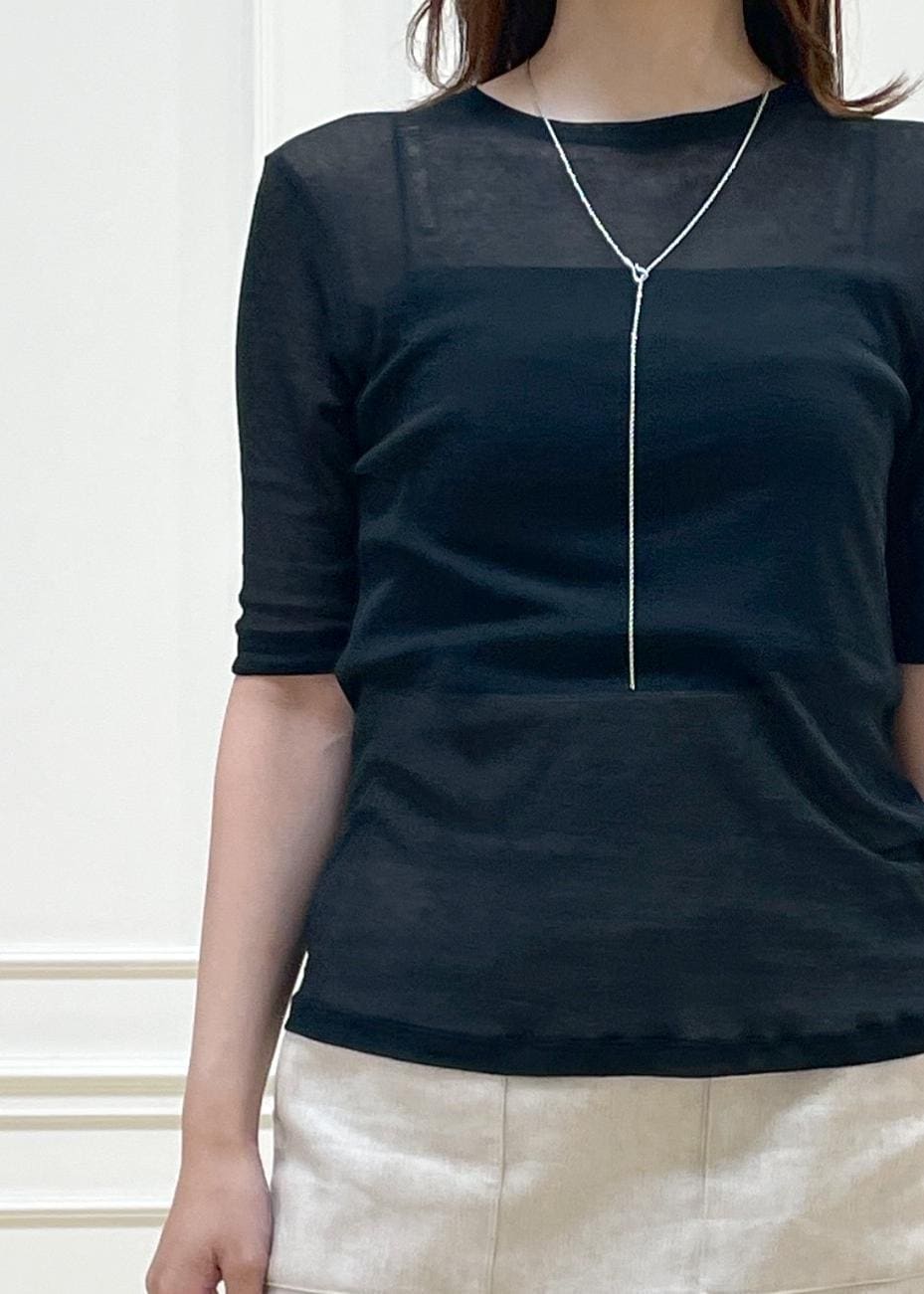 シアー感のある五分袖トップス