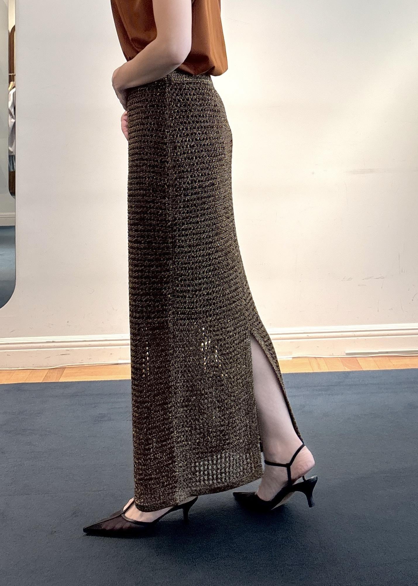 アウトレットROPÉラメメッシュスカート/セットアップ対応ブラック / 38¥13,200レビュー身長164cm、38サイズで足首までの丈感です。