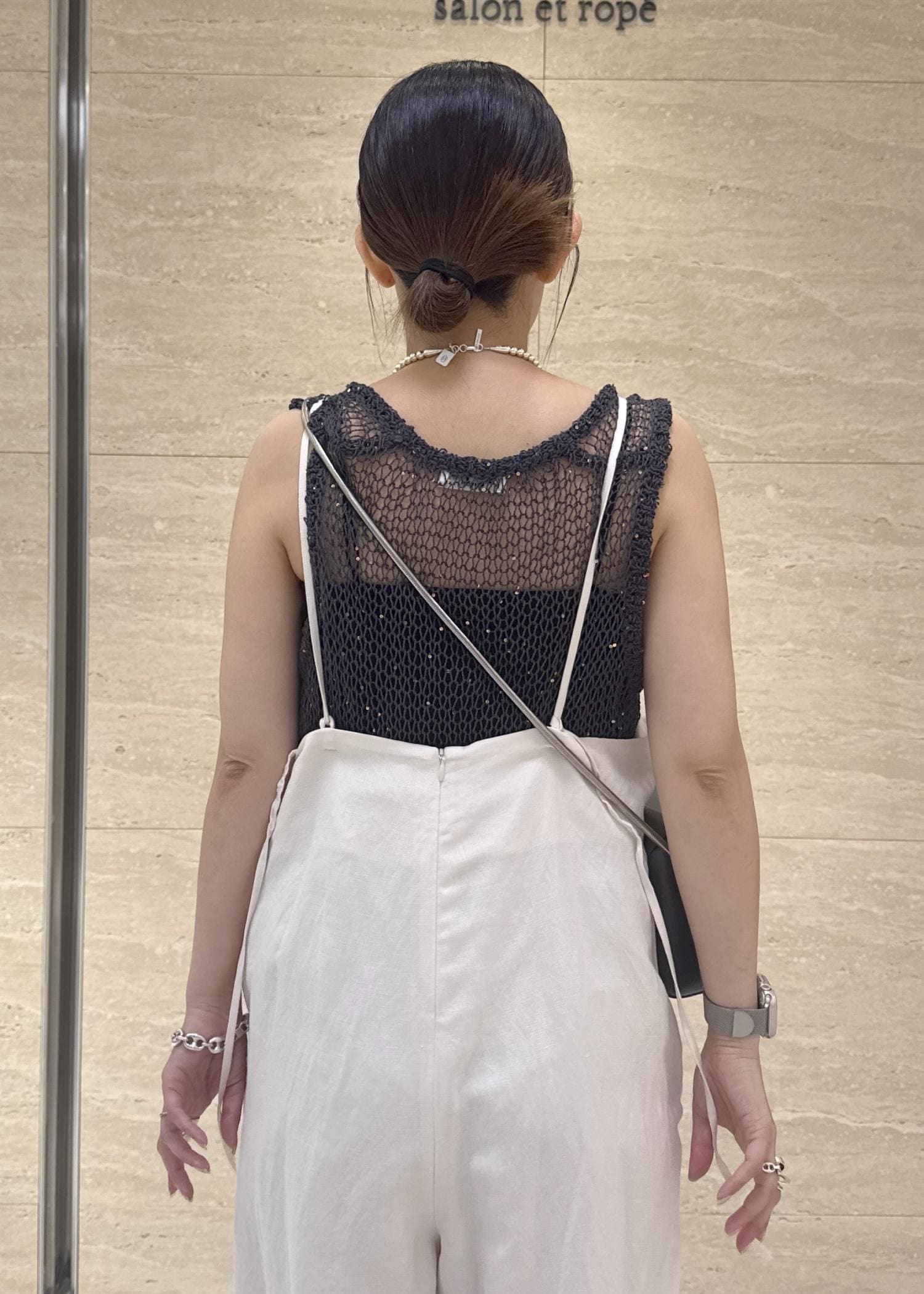 ざっくりとした編み目で、インナーで印象を変えたり、肌見せを楽しめます。