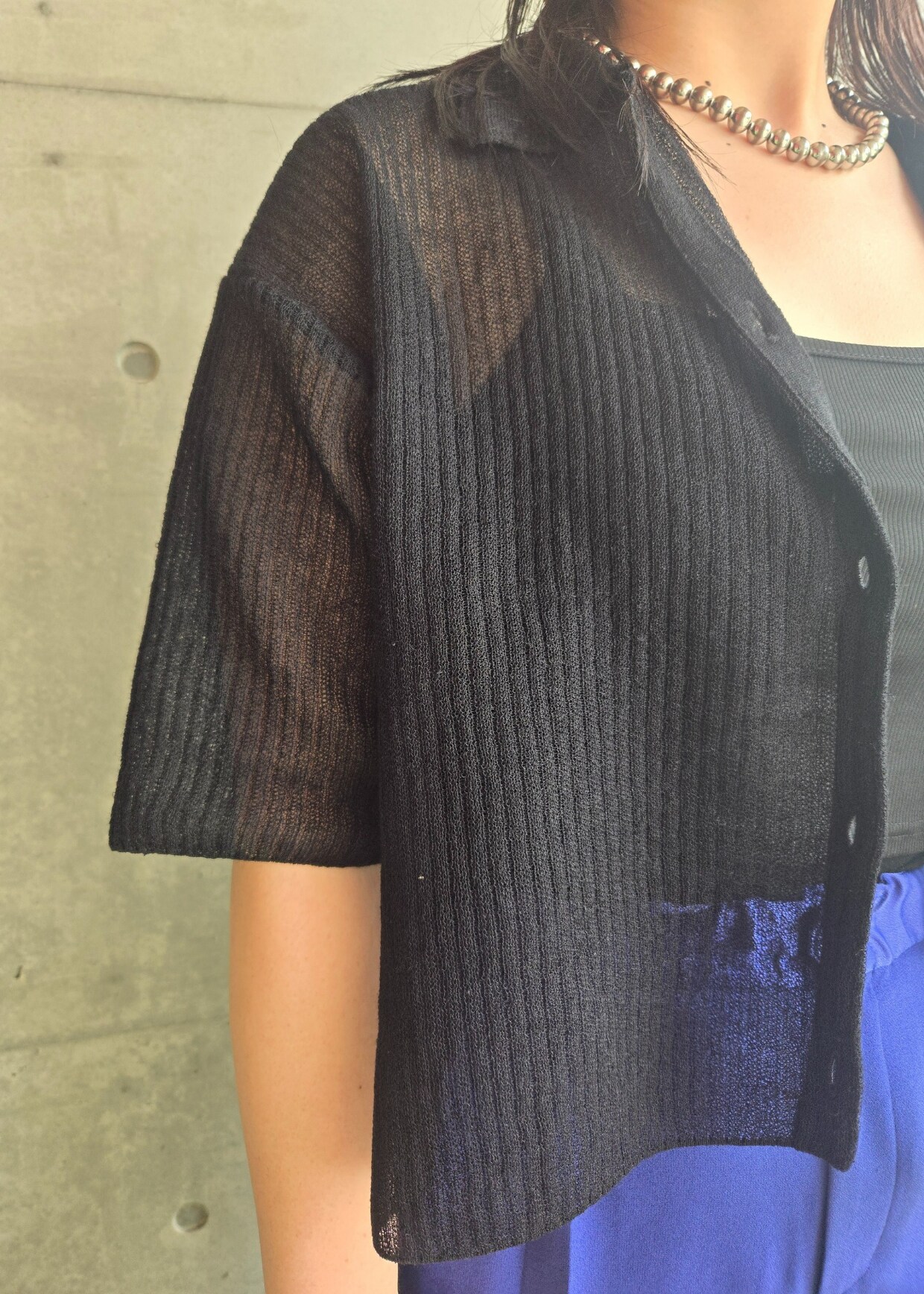 アウトレットROPÉ【洗える】シアークロップドポロニットブラック / F¥9,900レビュー全体的にゆったりしているので楽に着れるのでワンピースの羽織や中にキャミやタンクと会わせて着ることもできます。肌触りがザラザラとした質感で清涼感がある素材です。