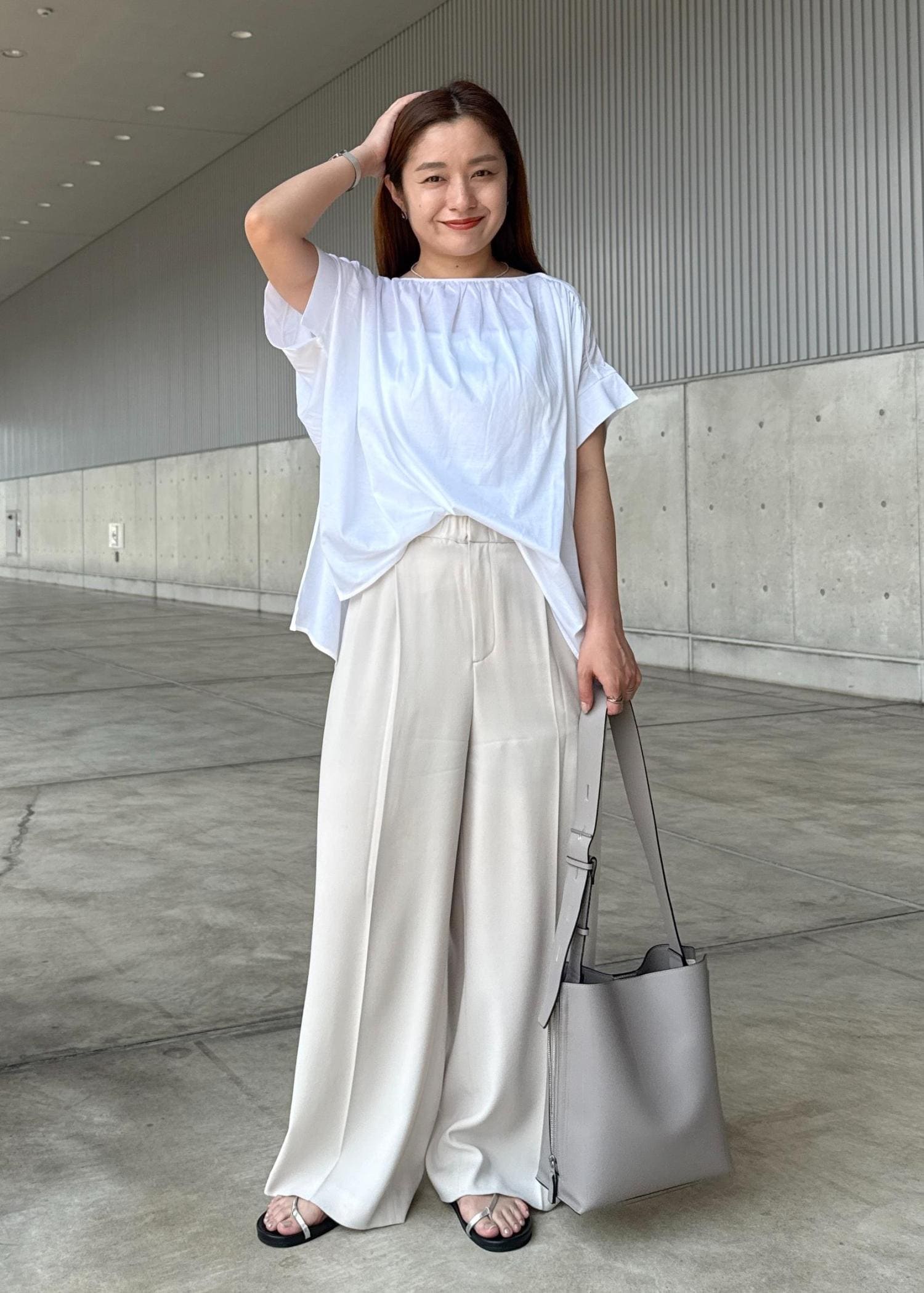 肌離れのいい大人Tシャツにとろみ感と落ち感が最高なワイドパンツ