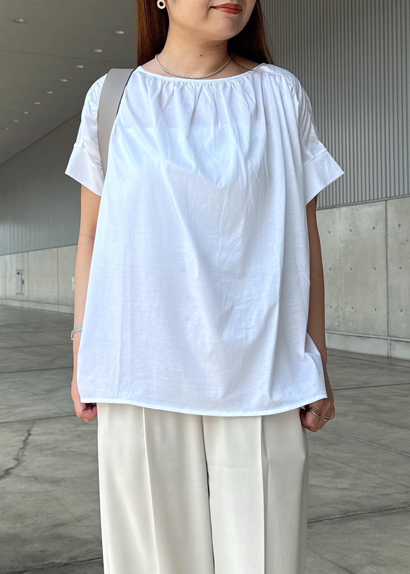 アウトレットROPÉ【洗える】クリア天竺ギャザー半袖プルオーバー/お仕事服ホワイト / F¥13,200レビュー接触冷感みたく、とても肌触りがよくひんやりとした感覚です。