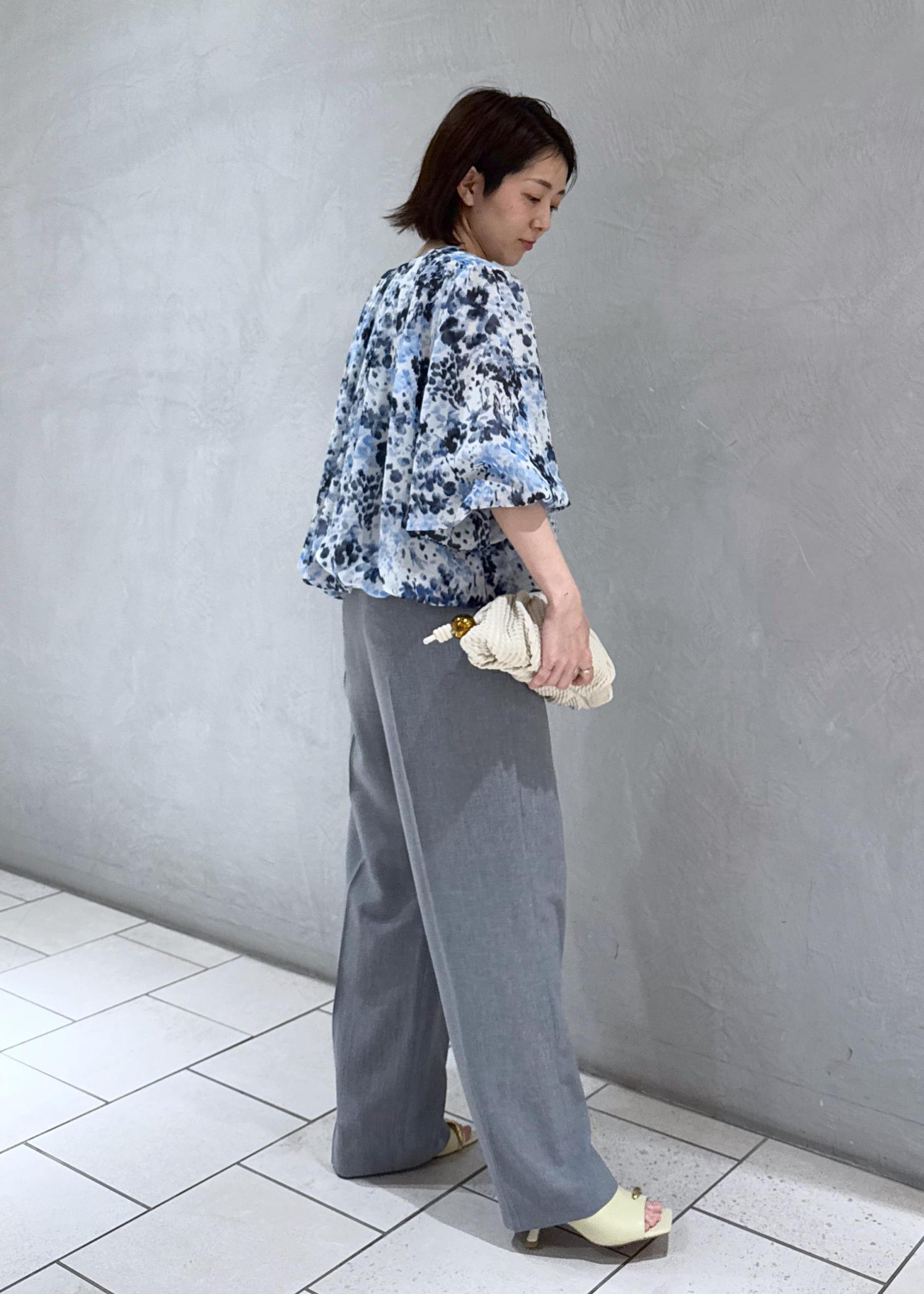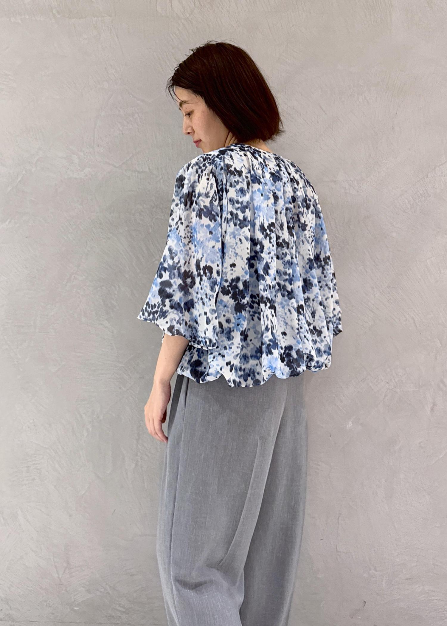 ぼかした花柄とバルーンシルエットがかわいいブラウスに