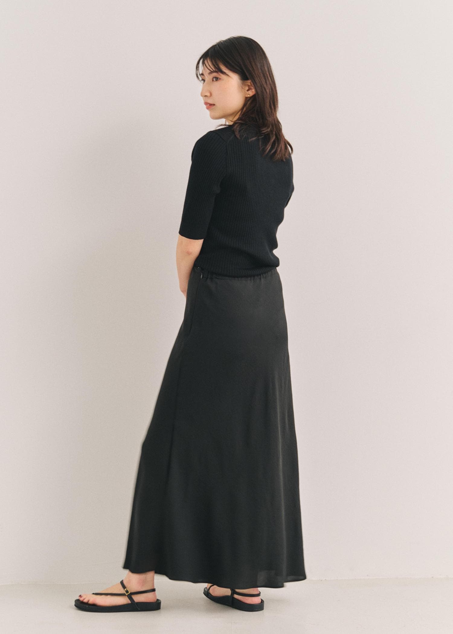 伸縮性がきつくない柔らかめのリブニットで、程よくスリムなシルエットです。