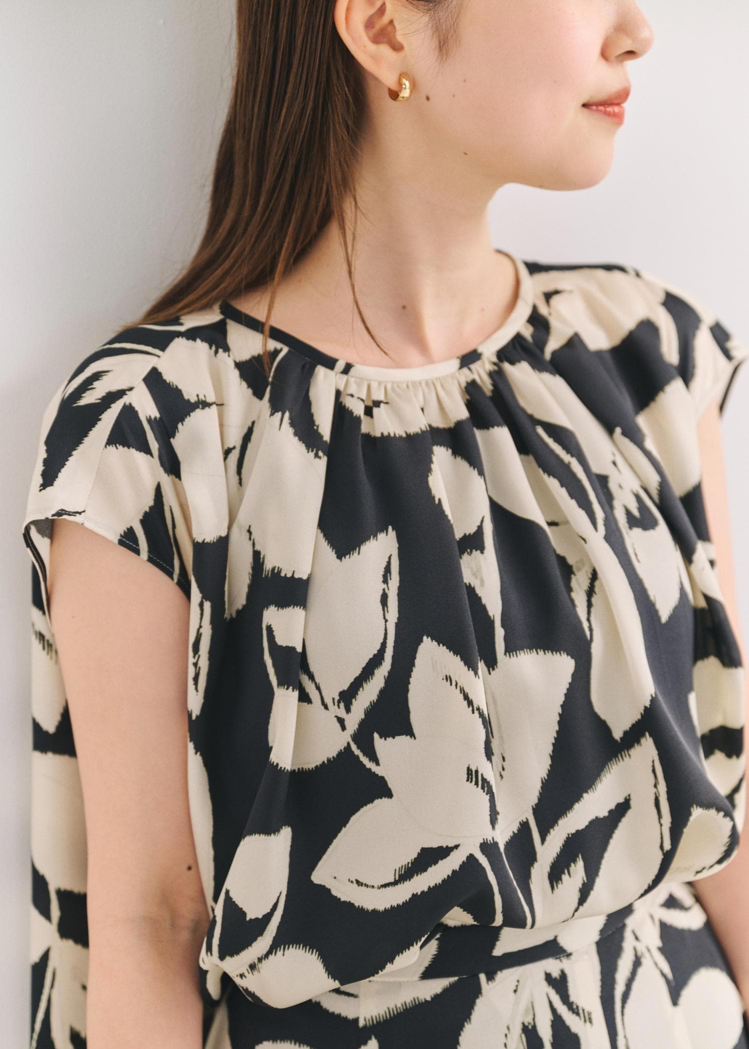 アウトレットROPÉDEVEAUXジオメトリックフラワーブラウスブラック / F¥11,550レビューフランスのテキスタイルメーカー『DEVEAUX(デヴォ—社)』の別注生地。