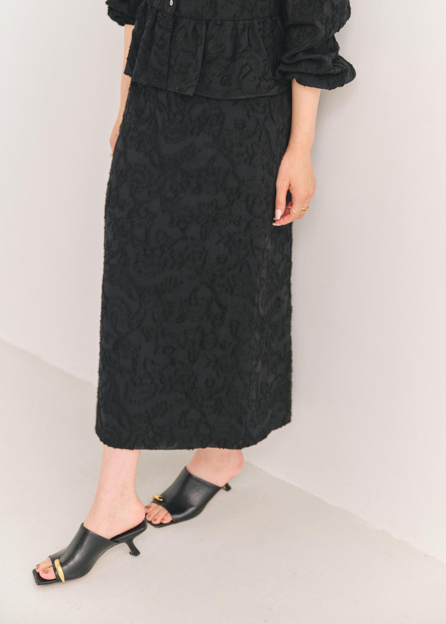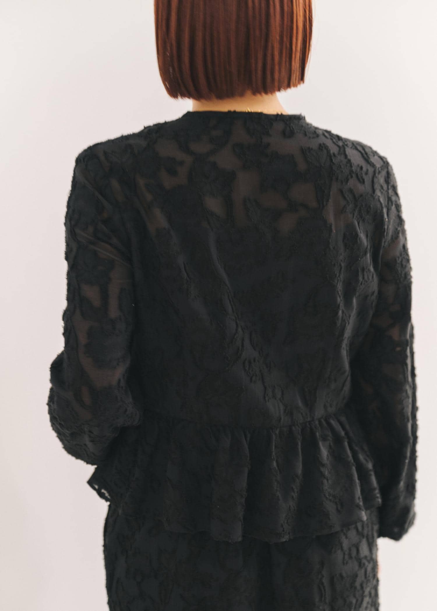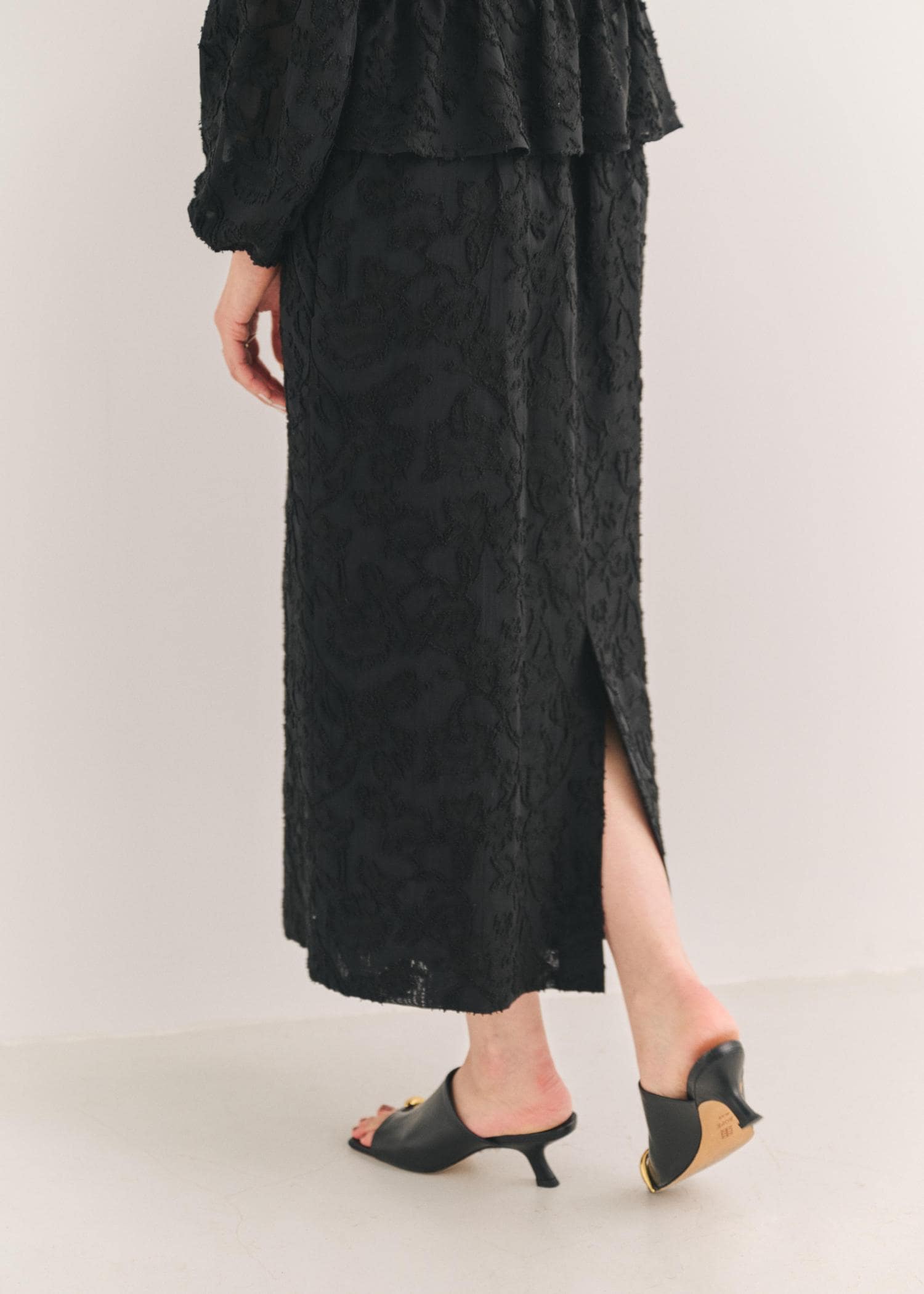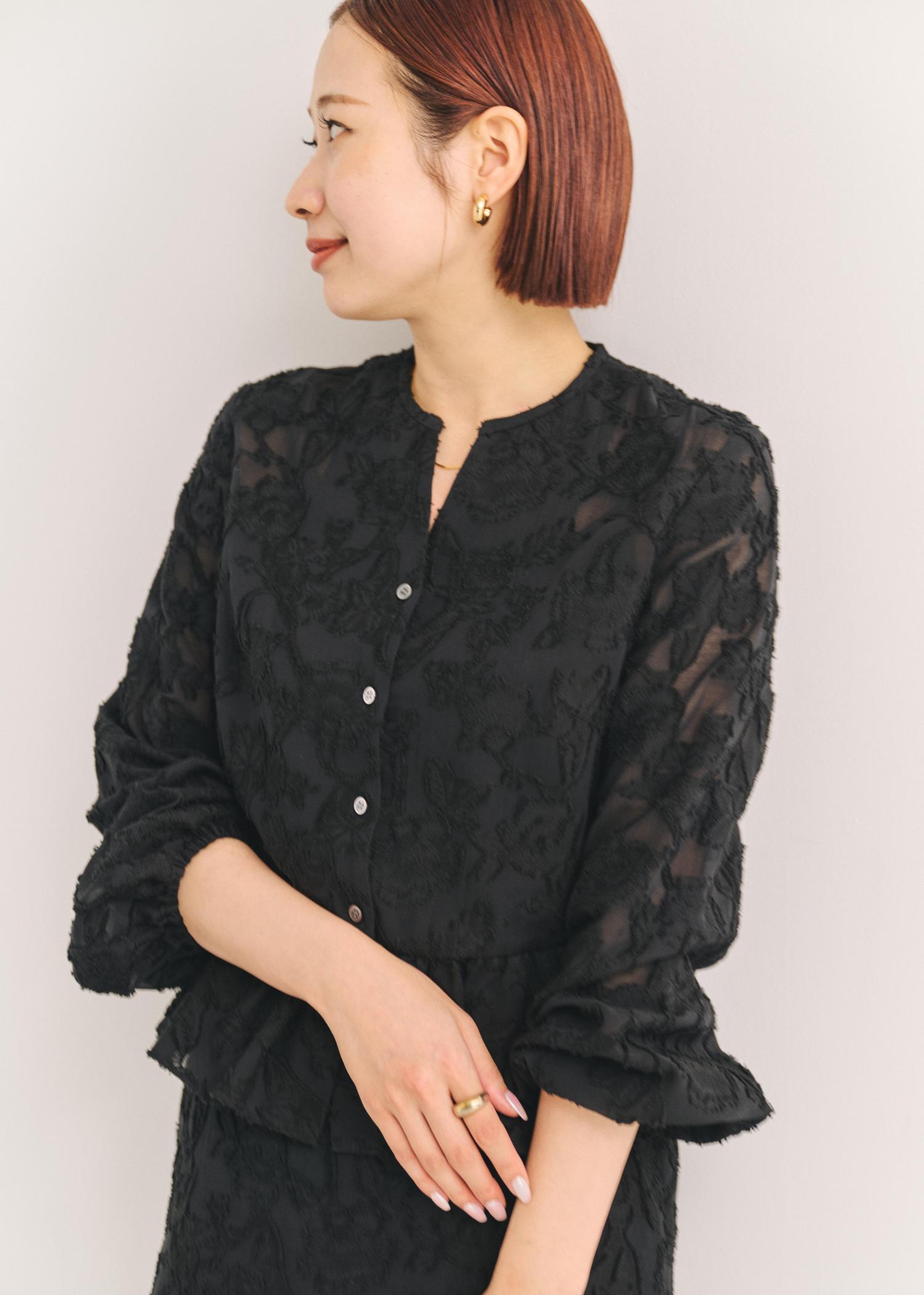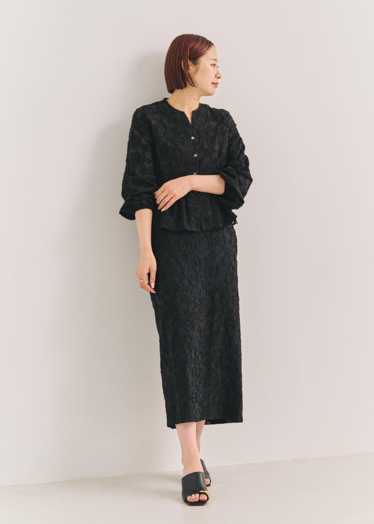 ブラックでも程よいシアー感があり重たく見えず、セットアップで着るとワンピース見えしお仕事やハレの日にも◎