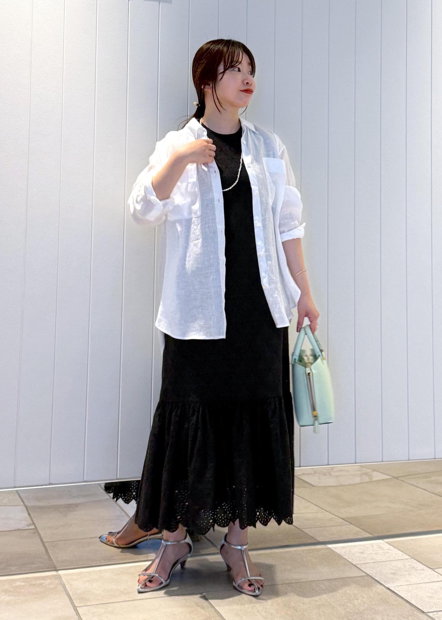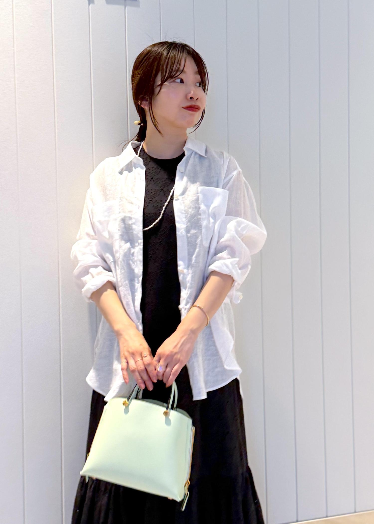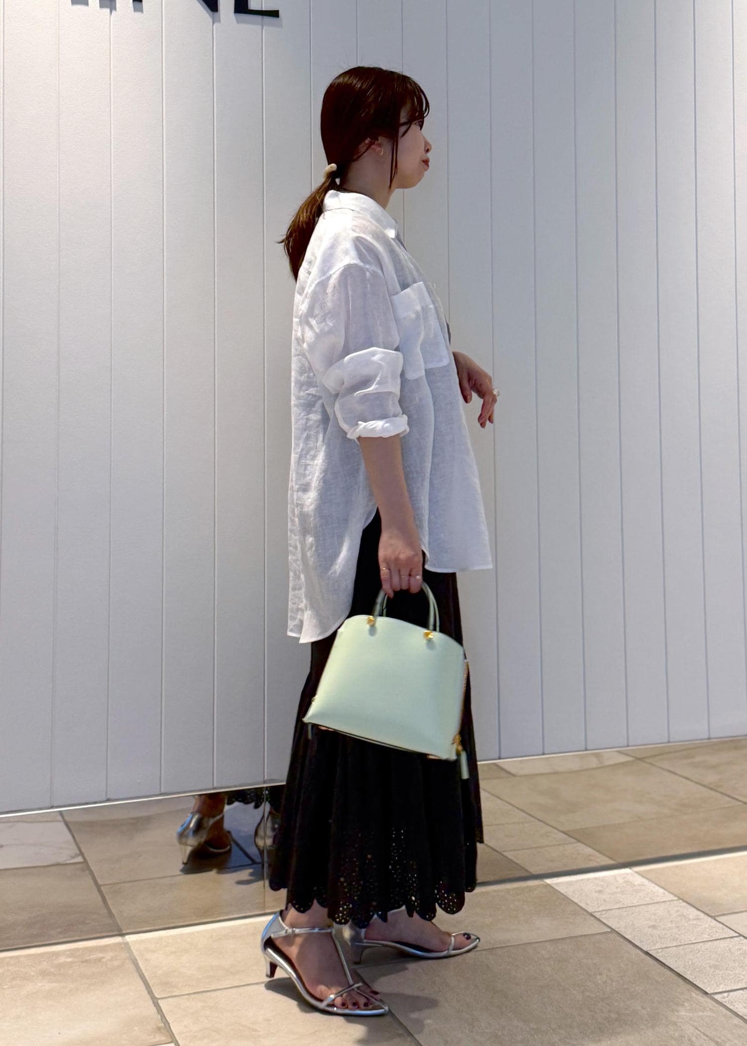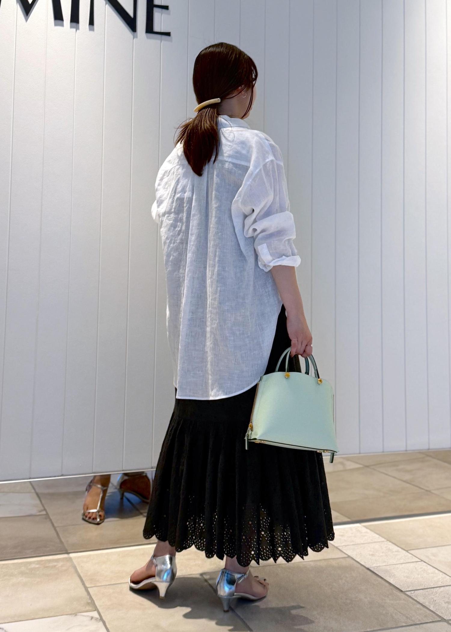 ROPÉ【洗える】ヨーロピアンリネンベーシックシャツ/一部セットアップ対応ホワイト / F¥25,300レビュー身幅はややゆとりがあり、ほんのり抜け感はありますが、ルーズ過ぎず品よく見えるサイズ感です。