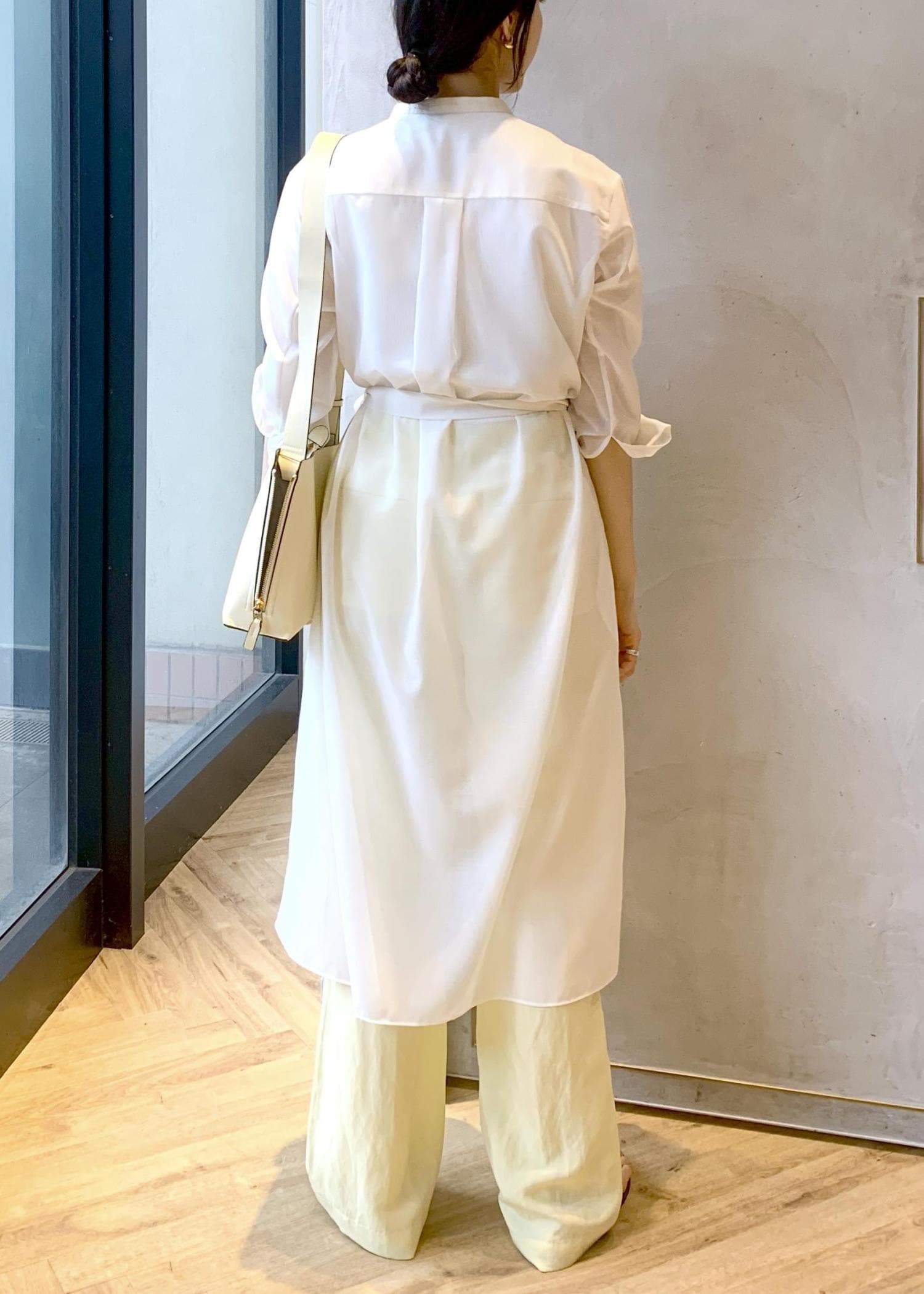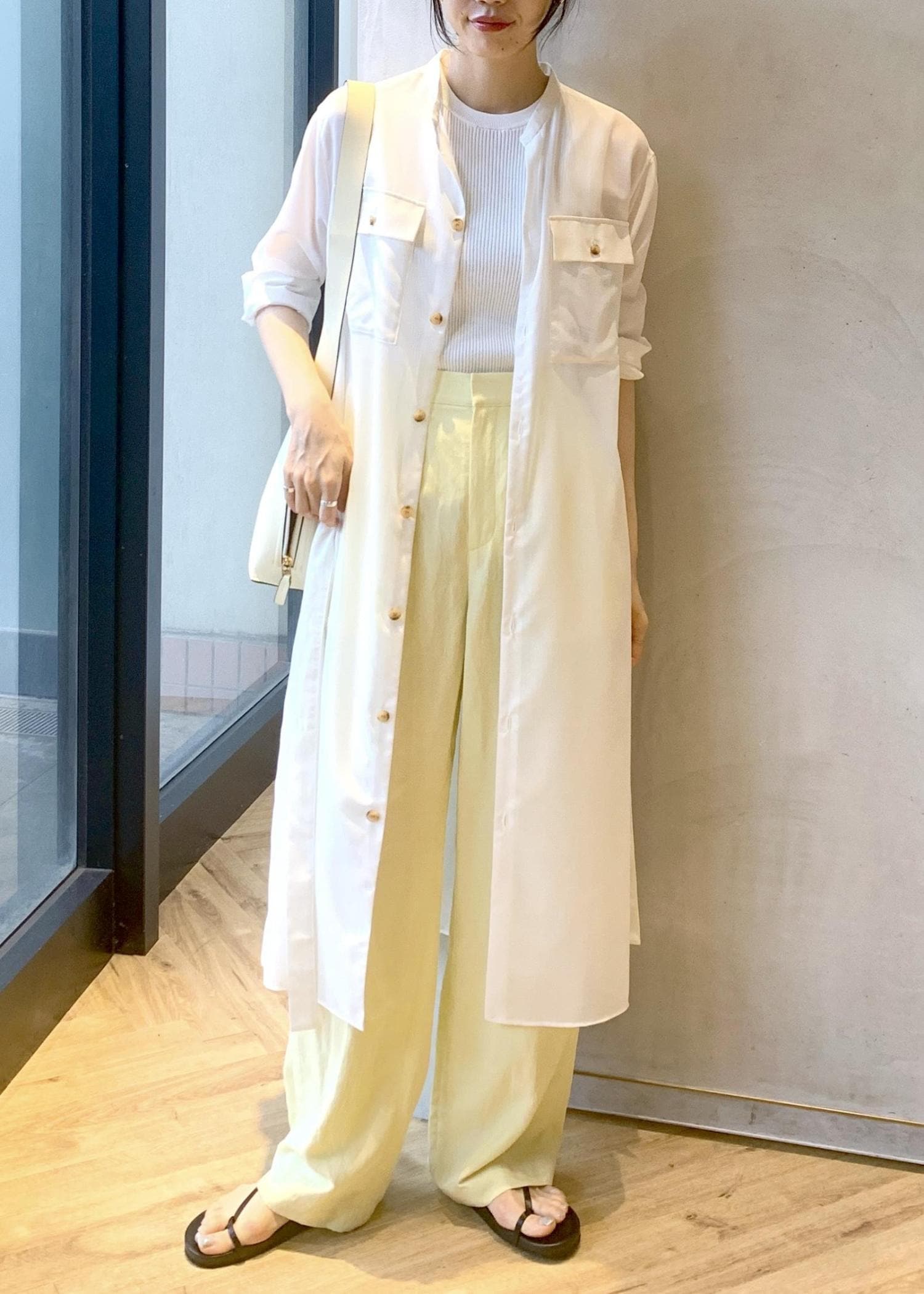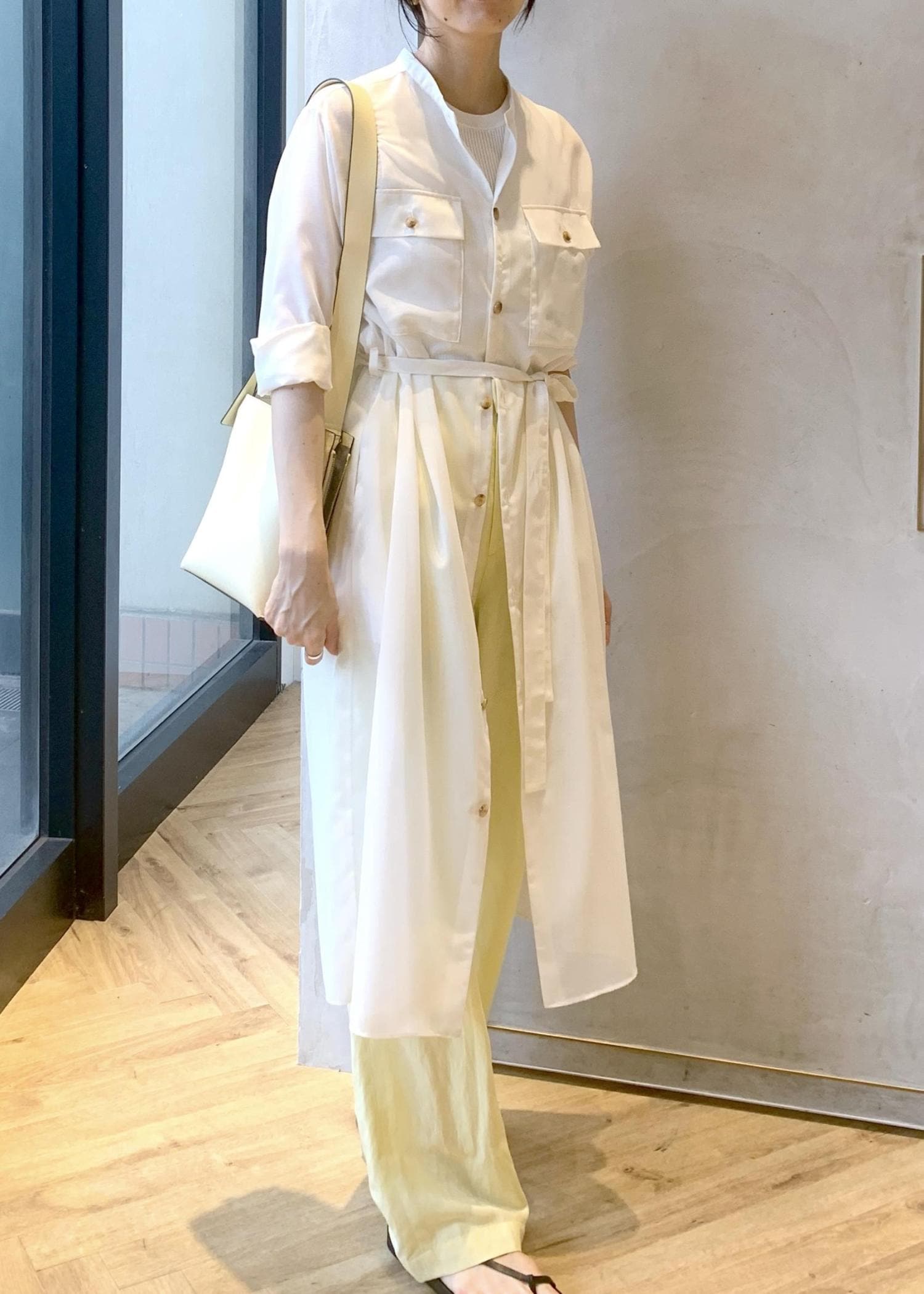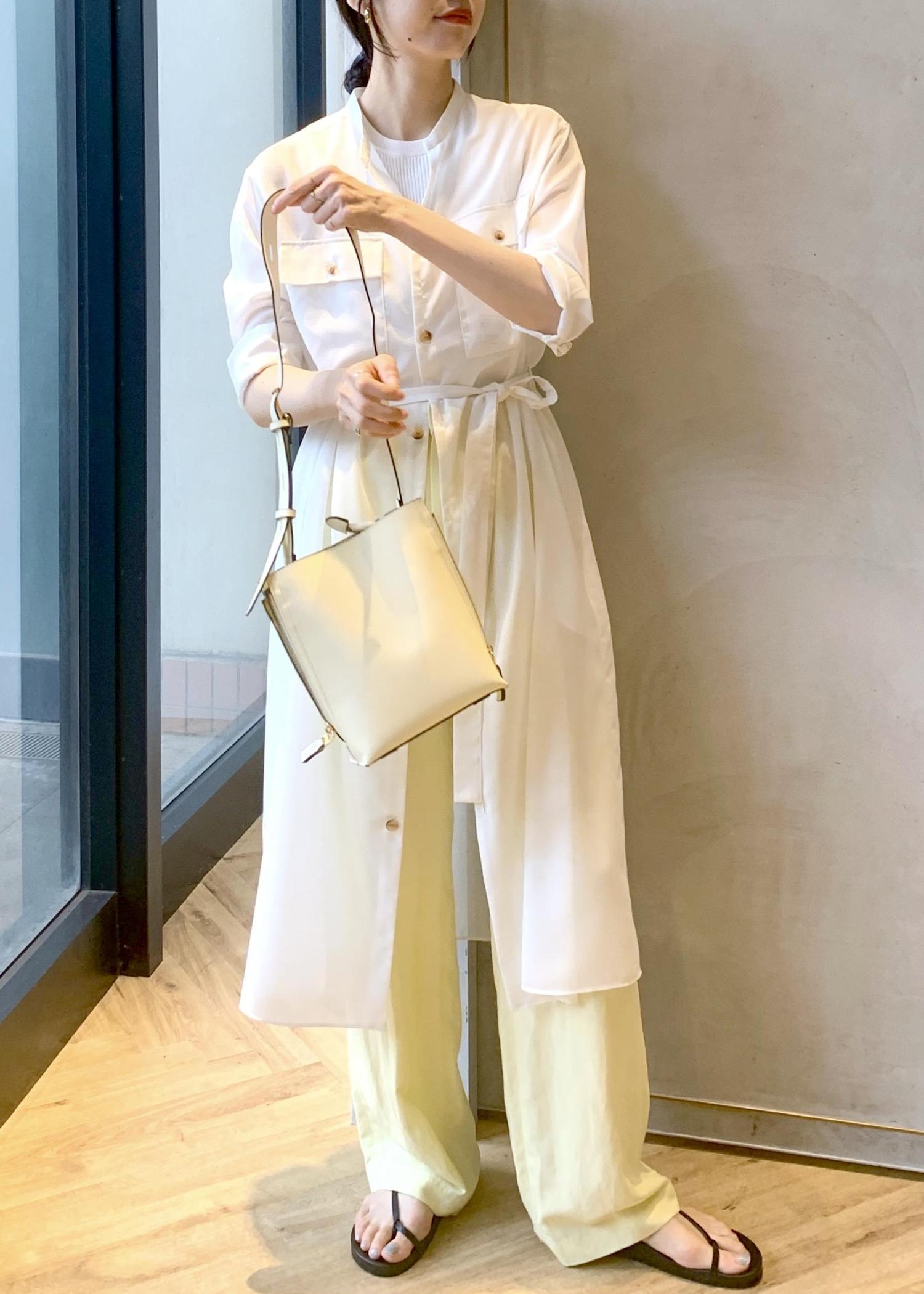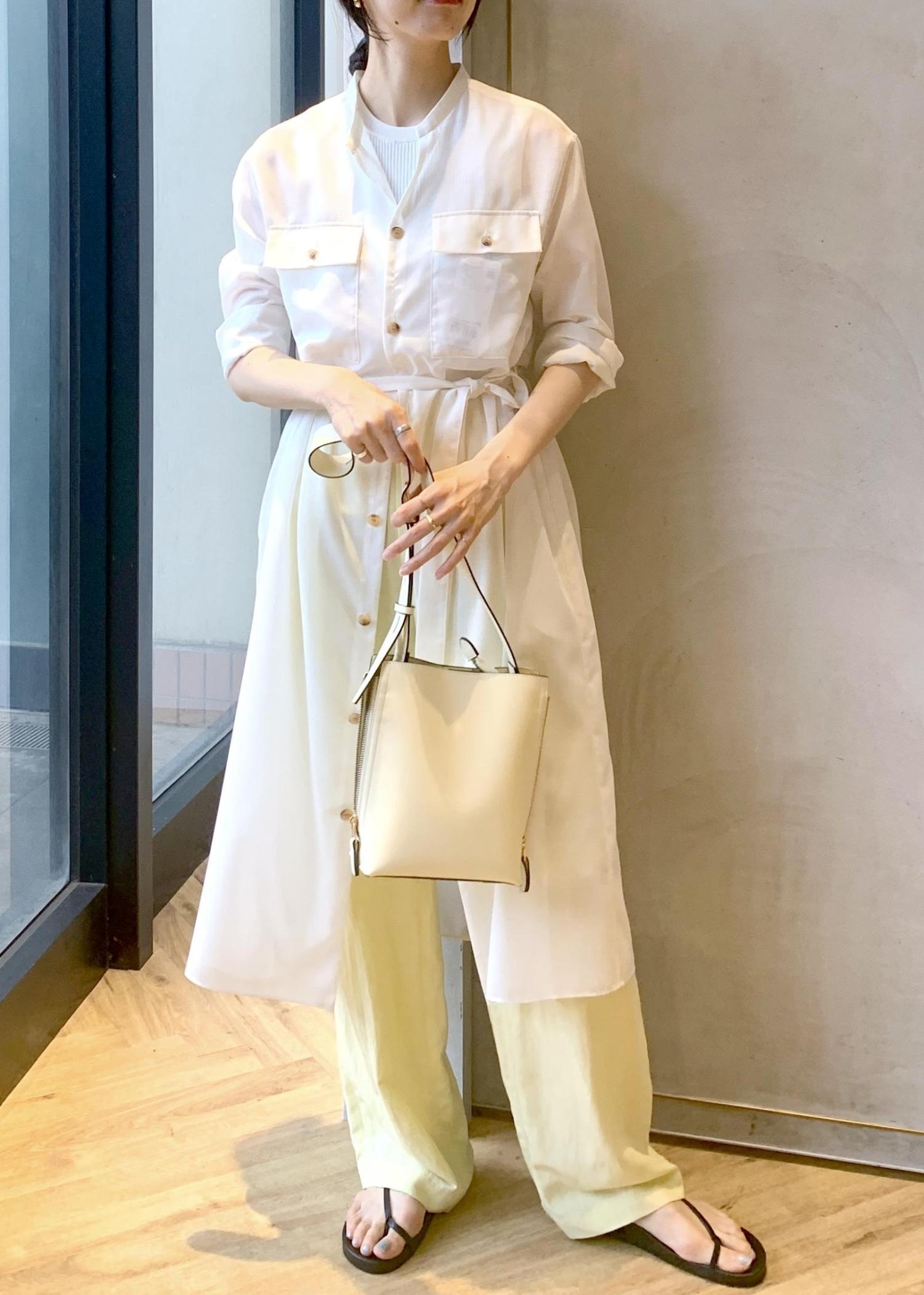 前開きのワンピースなので、羽織りとしても着回しが効きます!ボトムを合わせたレイヤードスタイリングもおすすめです◎