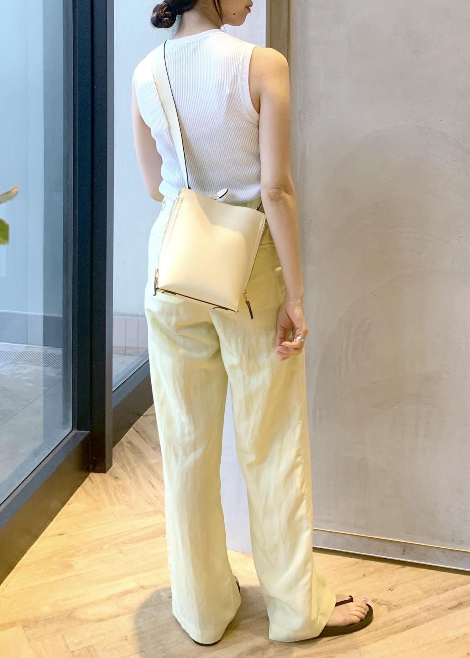アウトレットROPÉレーヨンリネン センタープレスパンツ【セットアップジャケット・ワンピース対応】イエロー / 38¥13,750レビュー167cmで38サイズ着用。