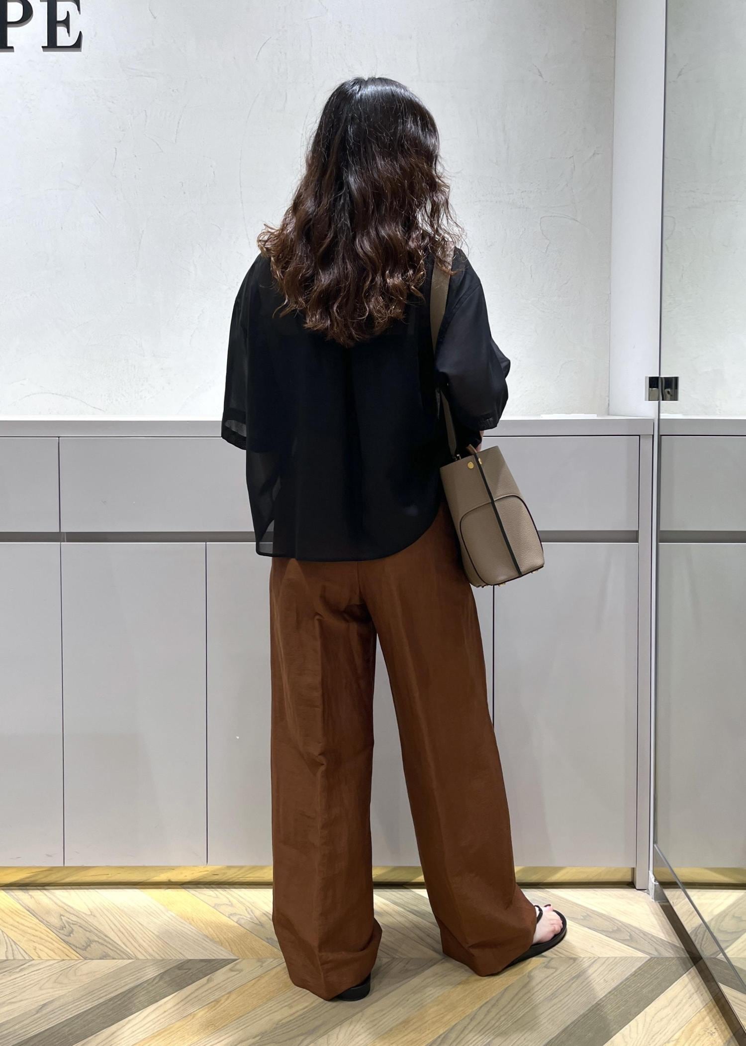 シルクのような艶のあるビスコースとリネン混の素材で、上品さと大人なリラックス感の出るパンツです♪ -