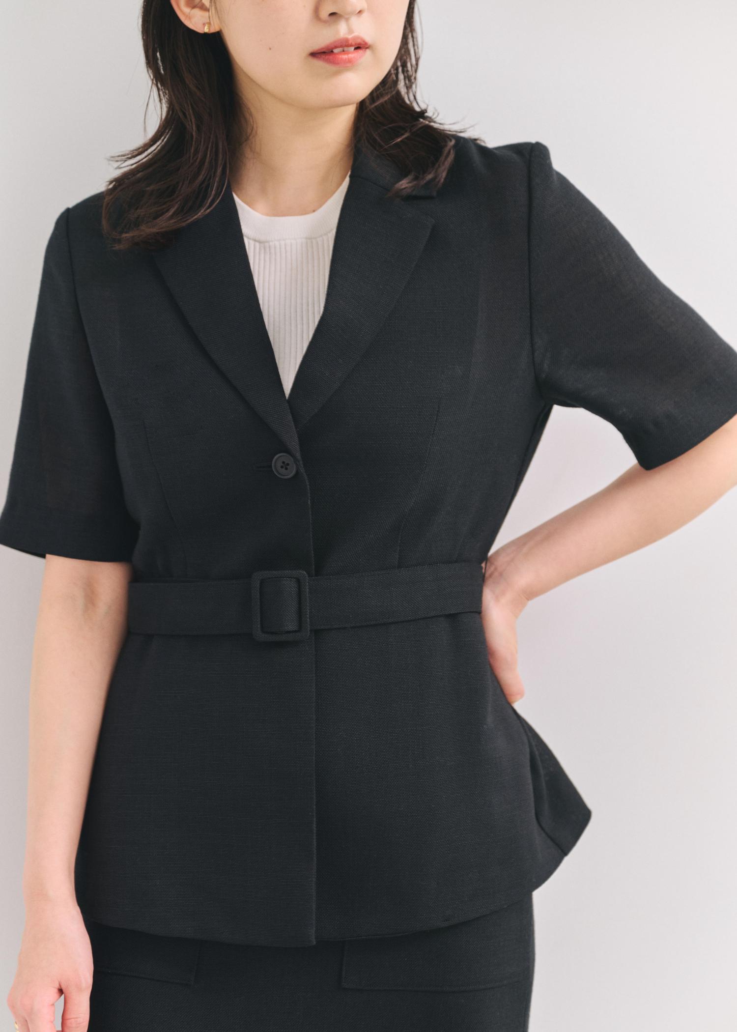 アウトレットROPÉリネンライク ベルテッドジャケット/セットアップ対応ブラック / 38¥20,900レビュー身長164㎝、普段38サイズ着用。