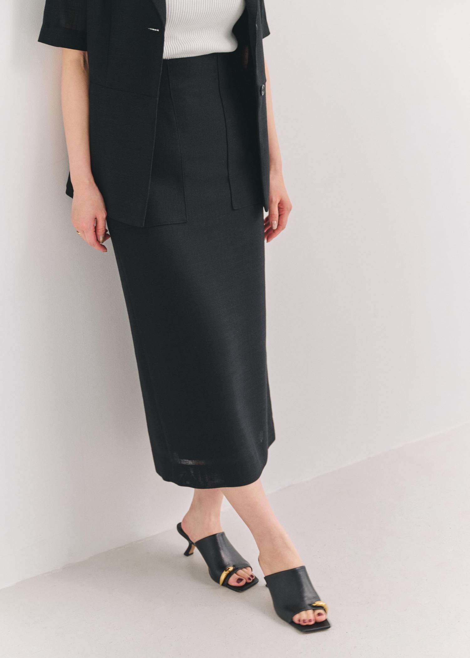 ROPÉリネンライク ポケット付きタイトスカート/イージーケアブラック / 38¥20,900レビュー身長164㎝、ボトムが普段38サイズを着用。